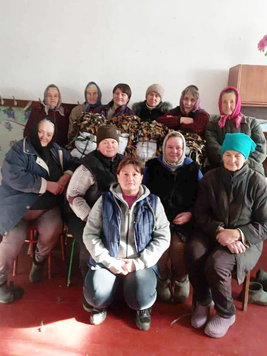 Однією з найбільш активних груп стала волонтерська команда з села Курилівка. П’ятнадцять місцевих жительок щодня знаходять час для роботи на користь армії: плетуть маскувальні сітки розмірами 6×3 та 6×4 метри.