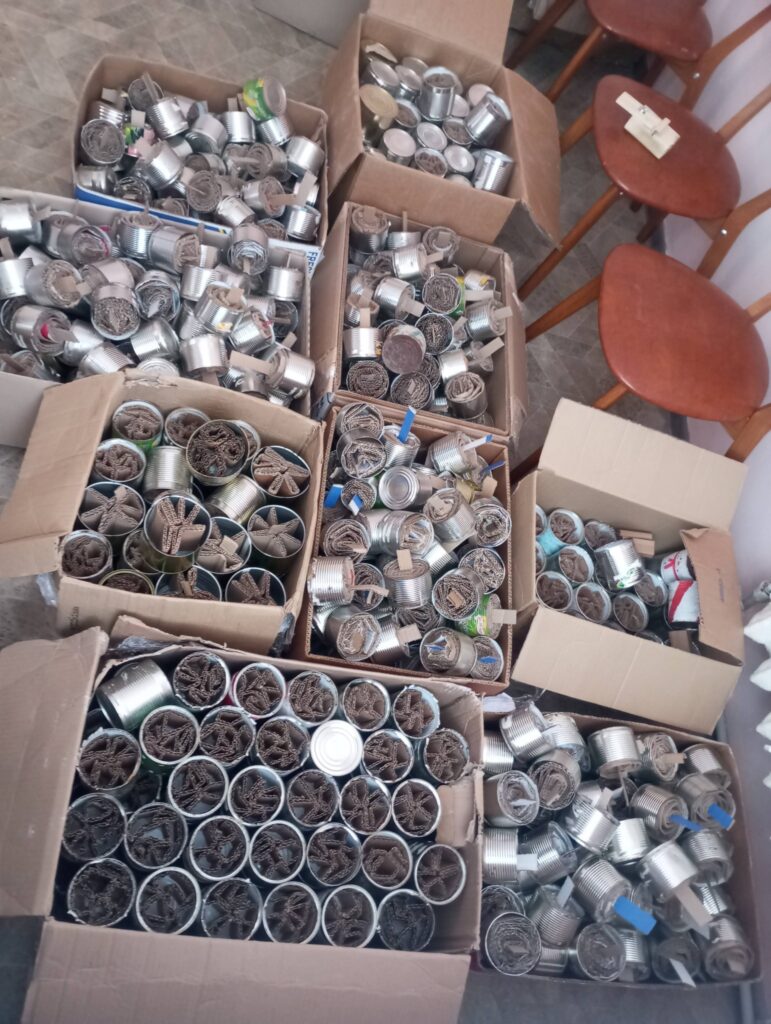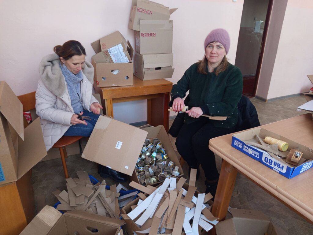 З металевими банками допомогли учасники спільноти «Окопні свічки» — цього разу чотири ящики жерстяних банок надіслала жителька Луцька. До виготовлення долучилися працівники бюджетних установ Черепашинецького старостинського округу. Результатом спільної роботи стали 350 окопних свічок, які вже найближчим часом вирушать до військових. Ще 350 заготовок очікують на чергову партію парафіну.