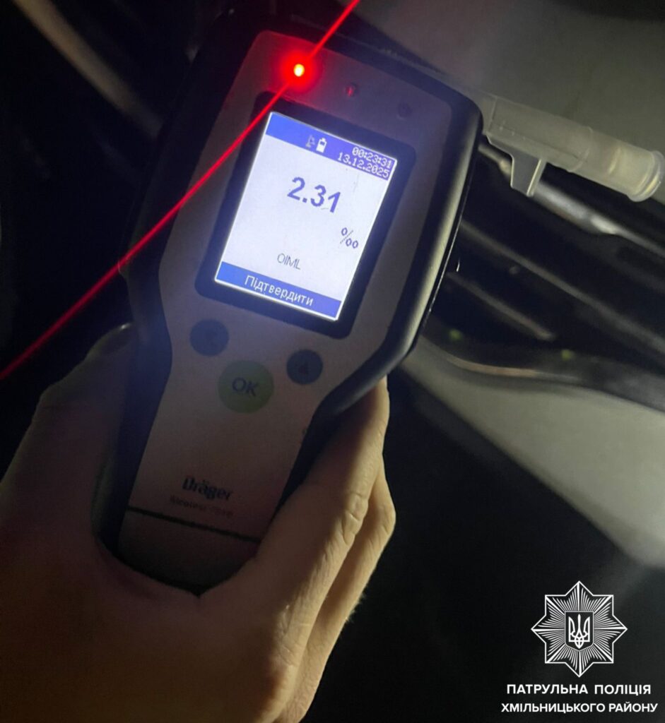 Перший інцидент стався у місті Хмільник на вулиці Івана Богуна. Поліцейські зупинили автомобіль ЗАЗ 1103, за кермом якого перебував 35-річний чоловік. Під час спілкування інспектори помітили у водія ознаки алкогольного сп’яніння. Огляд на місці за допомогою алкотестера Drager показав 2,31 проміле алкоголю.