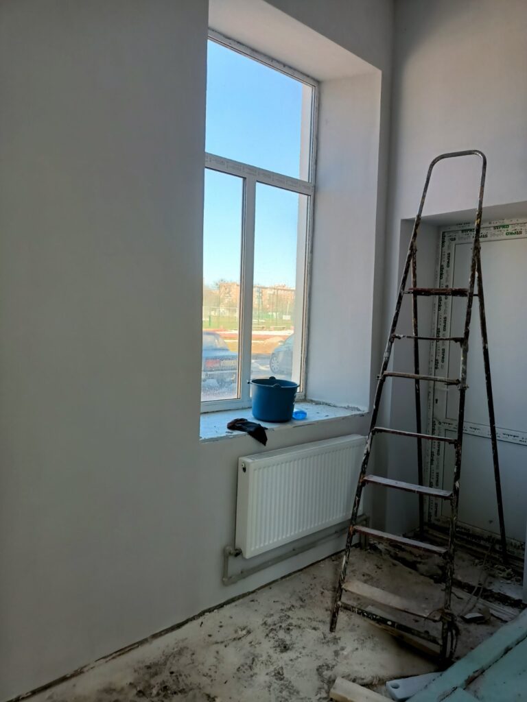 Наразі ремонтні роботи перебувають на завершальному етапі. До впорядкування приміщення долучилися й працівники управлінь, відділів та структурних підрозділів міської ради — вони провели толоку та прибрали від будівельного сміття відремонтовані кімнати.