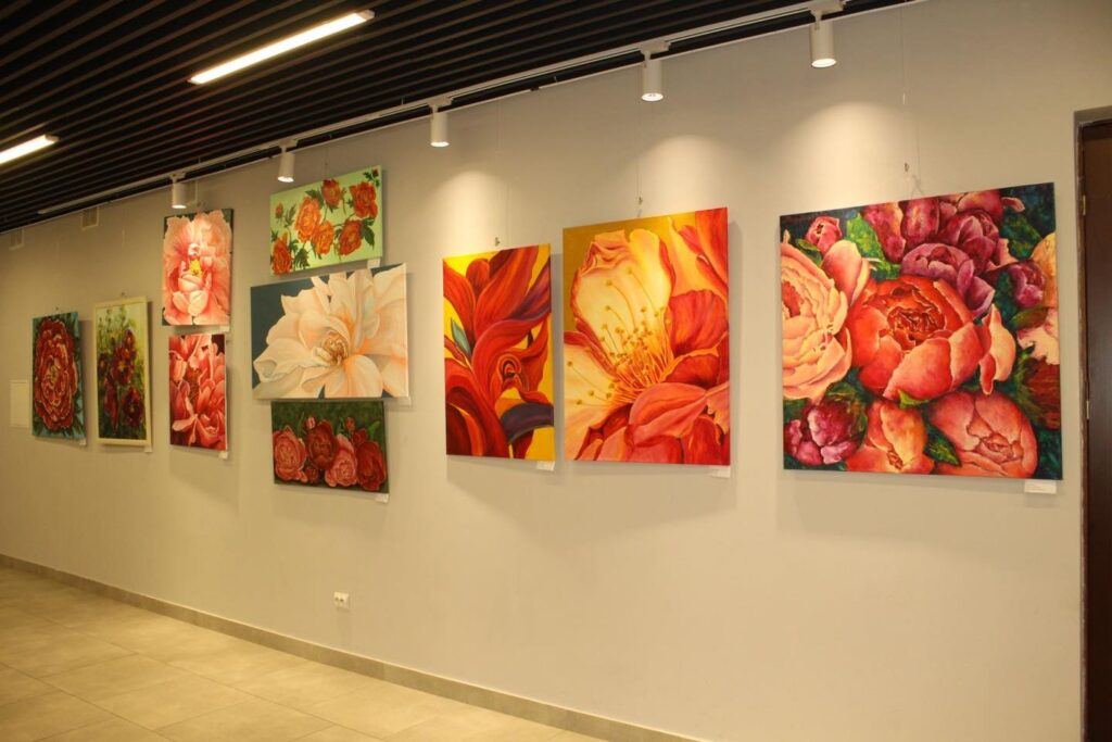 Картини Оксани Висоцької вразили глядачів сміливою кольоровою палітрою та енергійною манерою письма. На полотнах домінують яскраві квіткові мотиви, які ніби випромінюють світло та створюють атмосферу радості й життєствердності. Саме ці якості роблять виставку особливо важливою для громади — вона дарує відчуття краси та нагадує про здатність людини «квітнути» попри всі труднощі.