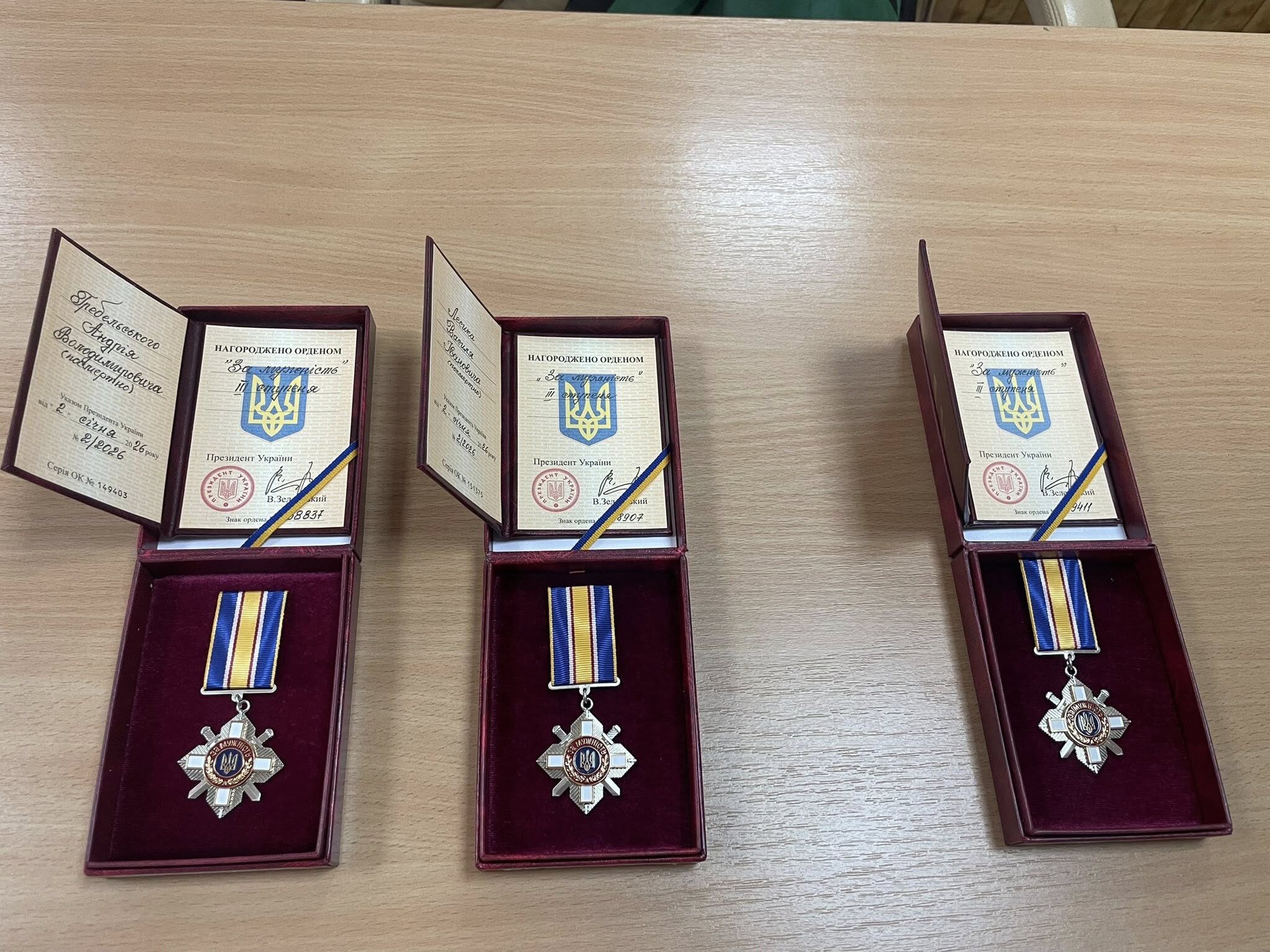 Згідно з Указами Президента України №2/2026 від 02.01.2026 та №55/2026 від 14.01.2026, орденом «За мужність» ІІІ ступеня (посмертно) нагороджено: