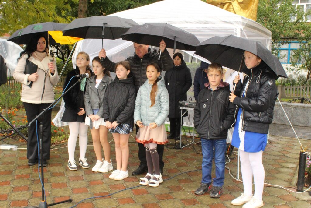 На церемонії син воїна Андрій Панчук та донька військовослужбовиці Софія Давидюк отримали Державний прапор України як символ єдності поколінь і вдячності від громади.