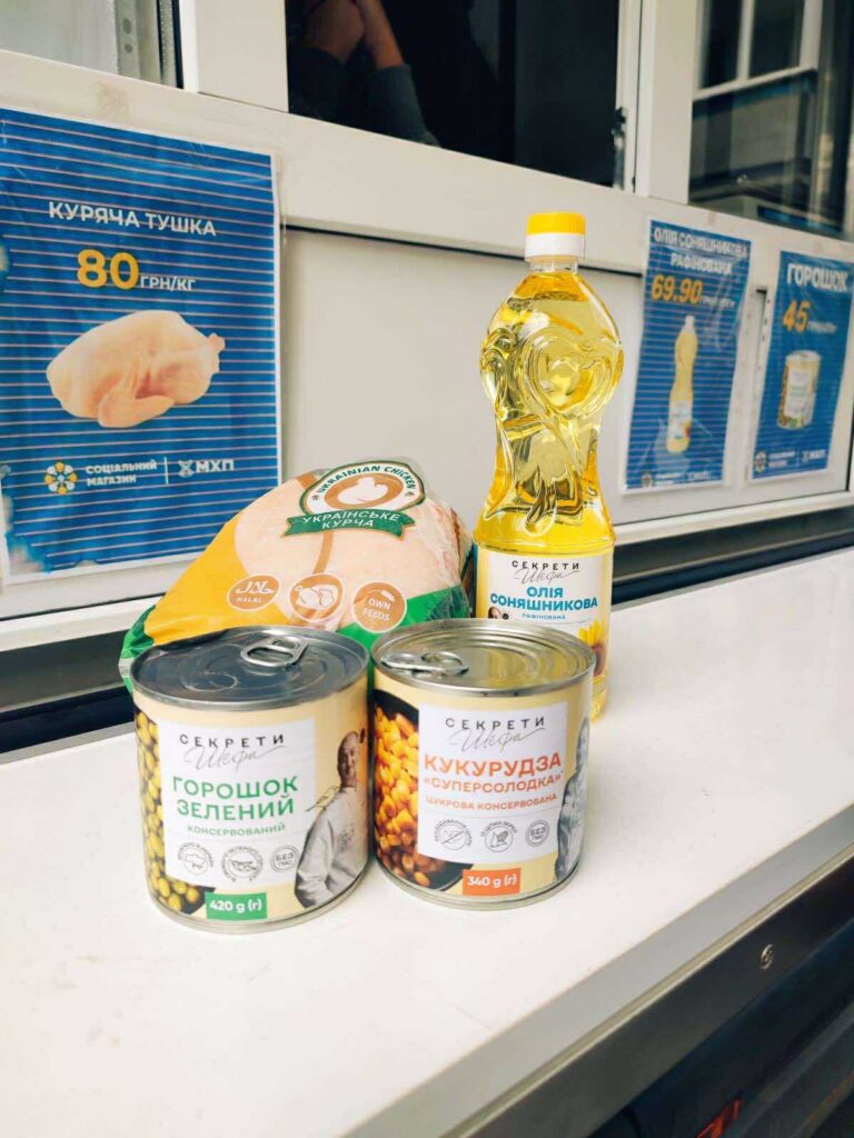 - консерви, крупи та інші продукти за значно нижчими, пільговими цінами від виробника.