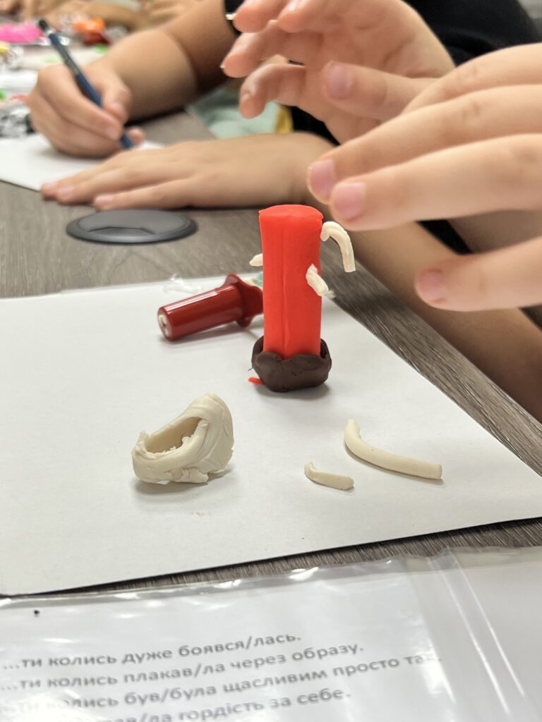 У просторі панувала тепла атмосфера підтримки, взаєморозуміння й дружби. Діти відкривалися, фантазували, створювали власні образи й фігурки з пластиліну, обговорюючи емоції, які вони вклали у свої маленькі витвори.