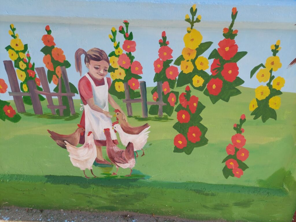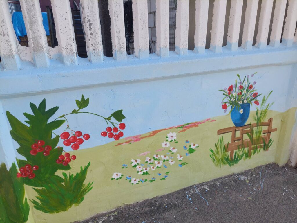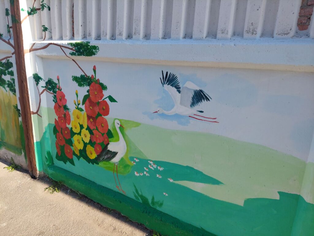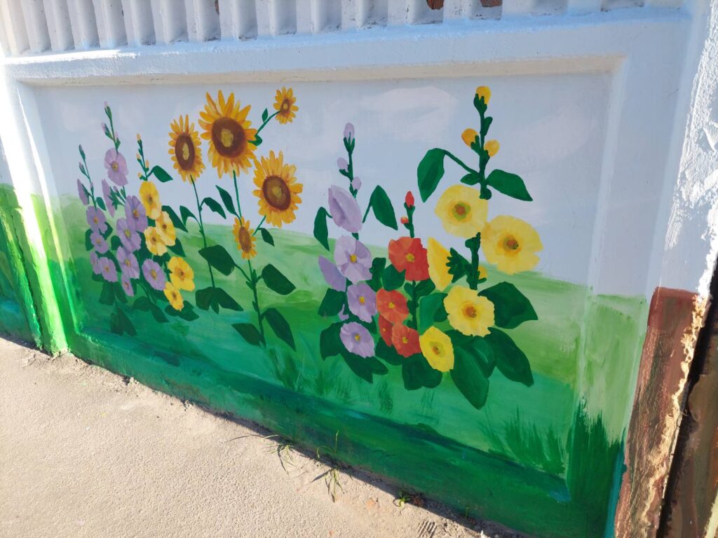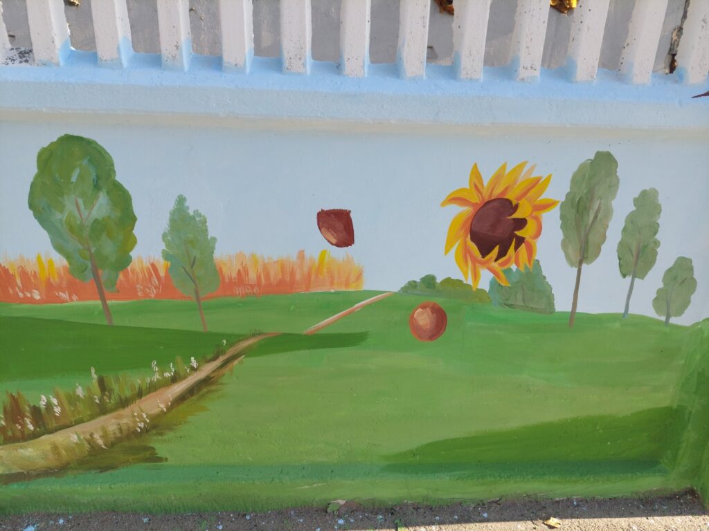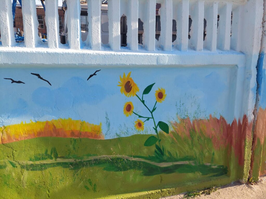 Щодня впродовж трьох тижнів жінка приїжджає до Калинівки та розписує бетонний паркан. З легкої руки талановитої мисткині тут «зацвіли» мальви та соняшники, «налила» пишні грона калина, «заколосилися» щедрі поля. Є тут безтурботна дітвора та чудернацькі тварини і птахи, які звеселяють душу перехожих.