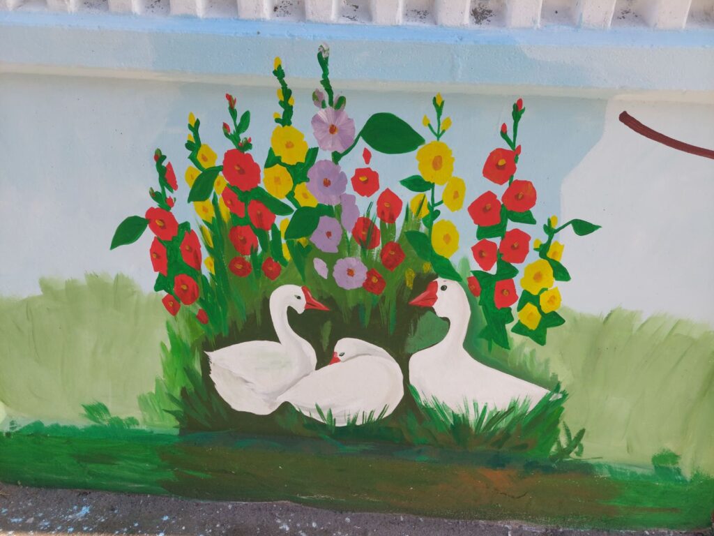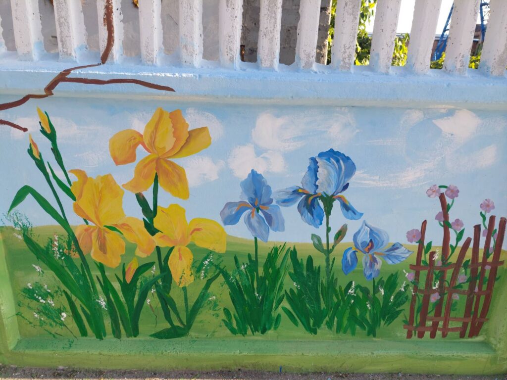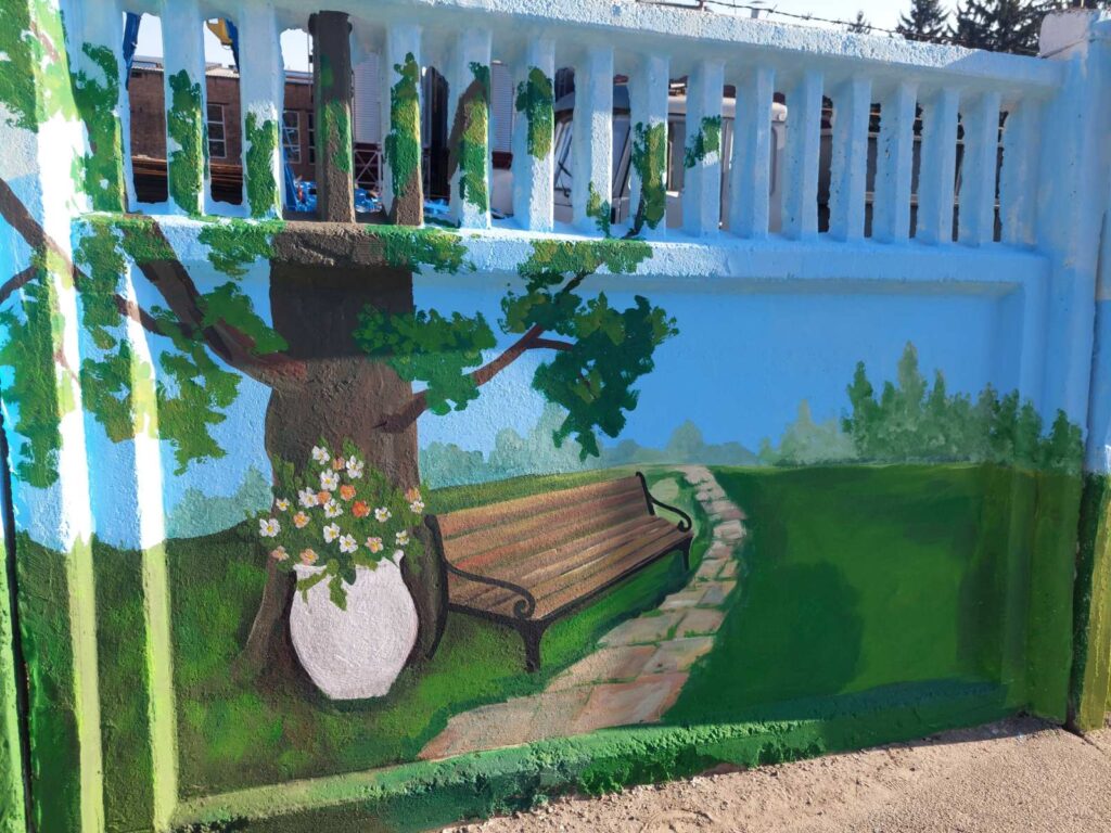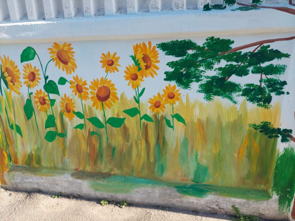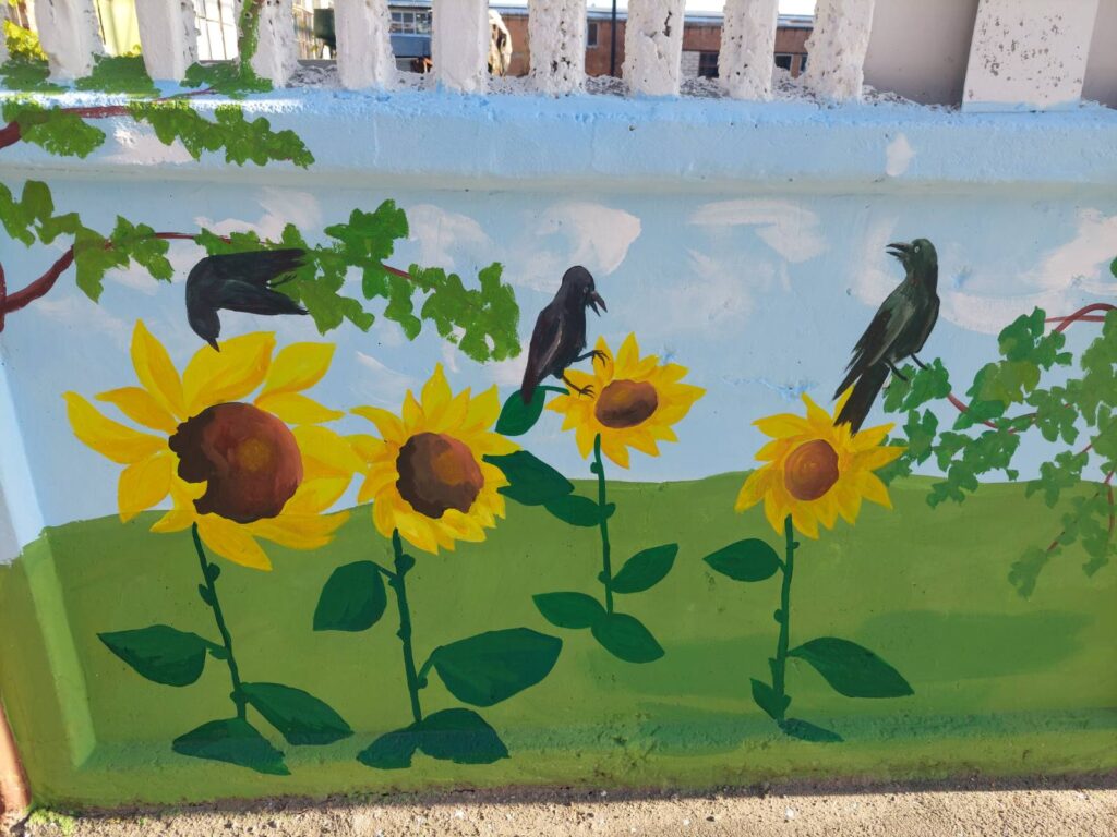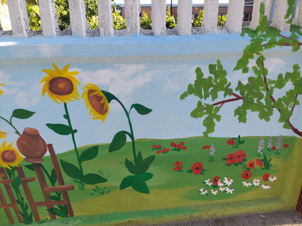 Щодня впродовж трьох тижнів жінка приїжджає до Калинівки та розписує бетонний паркан. З легкої руки талановитої мисткині тут «зацвіли» мальви та соняшники, «налила» пишні грона калина, «заколосилися» щедрі поля. Є тут безтурботна дітвора та чудернацькі тварини і птахи, які звеселяють душу перехожих.