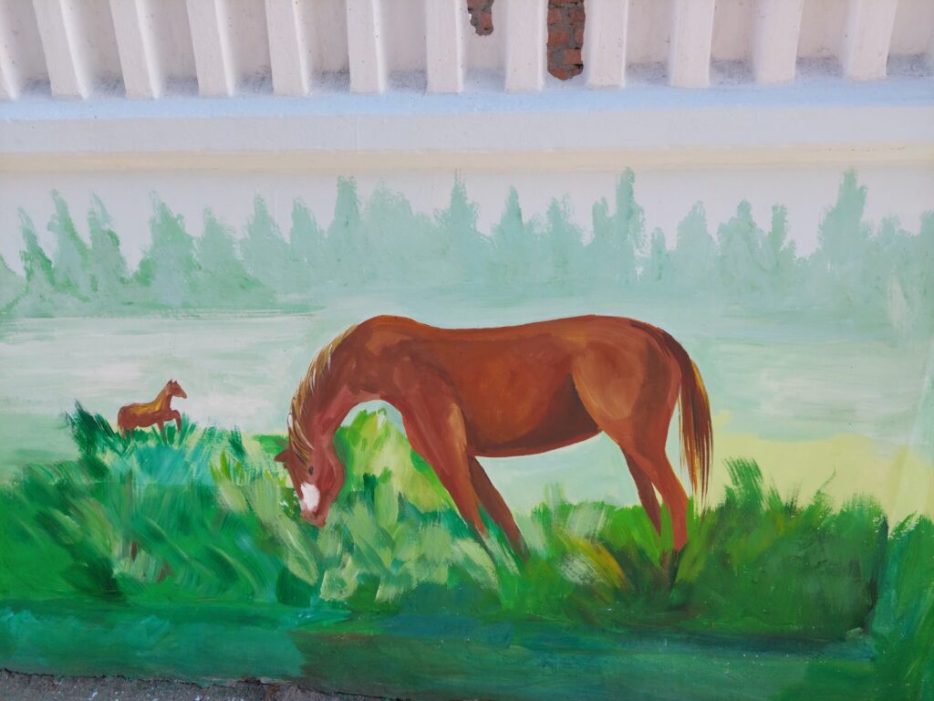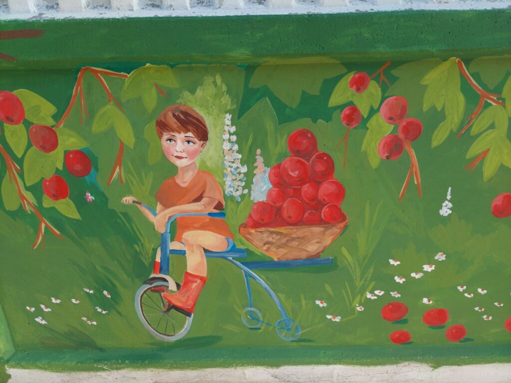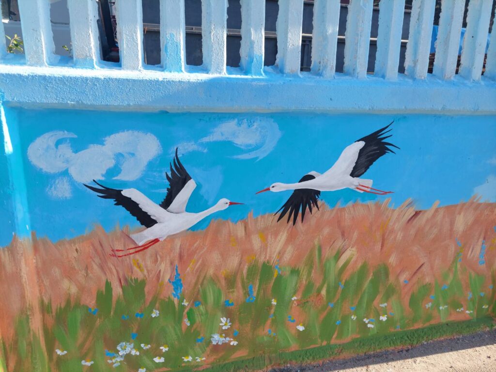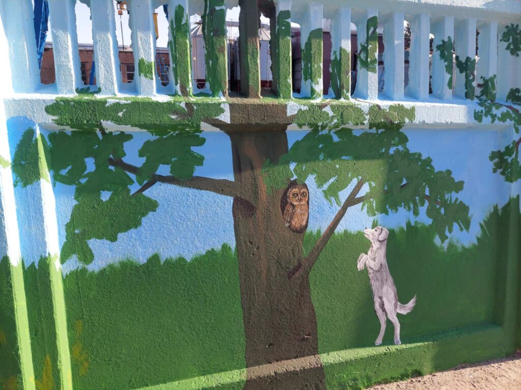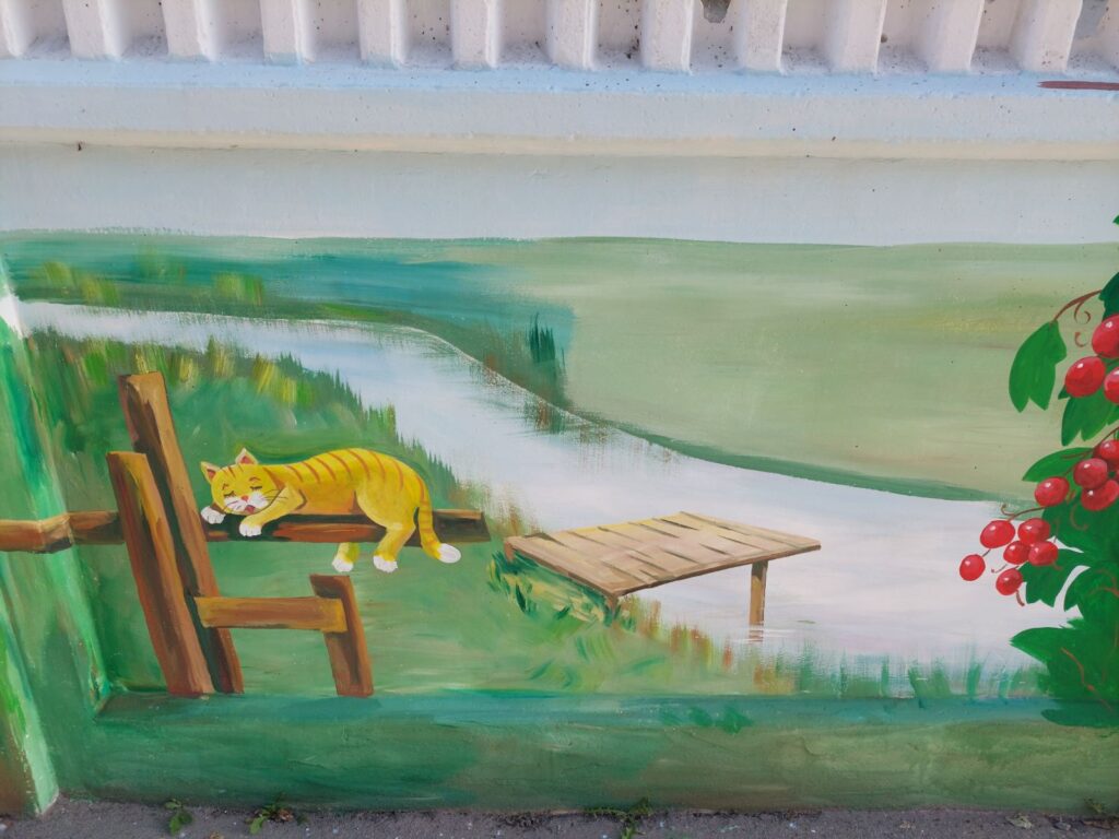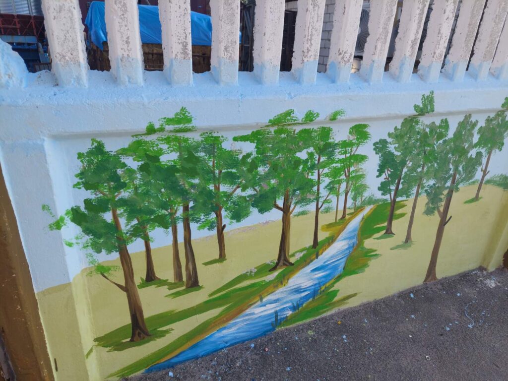 Щодня впродовж трьох тижнів жінка приїжджає до Калинівки та розписує бетонний паркан. З легкої руки талановитої мисткині тут «зацвіли» мальви та соняшники, «налила» пишні грона калина, «заколосилися» щедрі поля. Є тут безтурботна дітвора та чудернацькі тварини і птахи, які звеселяють душу перехожих.