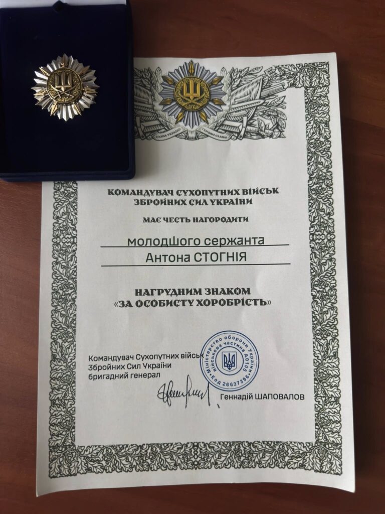 молодшого сержанта Стогнія Антона Володимировича, командира мотопіхотного відділення мотопіхотного батальйону військової частини А4962.