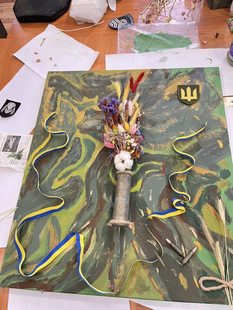 Учасники малювали, розфарбовували та створювали аплікації, спільно працюючи над інсталяцією на тему війни в Україні. Кожен додав власний штрих до колективної роботи, що стала символом сили, єдності та внутрішньої стійкості.