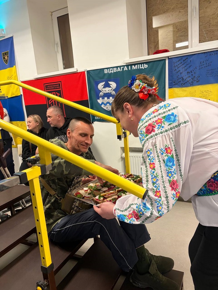 Для захисників підготували концертну програму за участі народного хорового гурту «Співоча родина» (керівник Юлія Мельник), народного ансамблю української пісні «Чарівниці» (керівник Катерина Пархомчук) та солістів. Артисти виконували українські пісні, даруючи військовим щирі емоції та гарний настрій. Не обійшлося і без традиційної жартівливої пісні про сало та частування канапками.