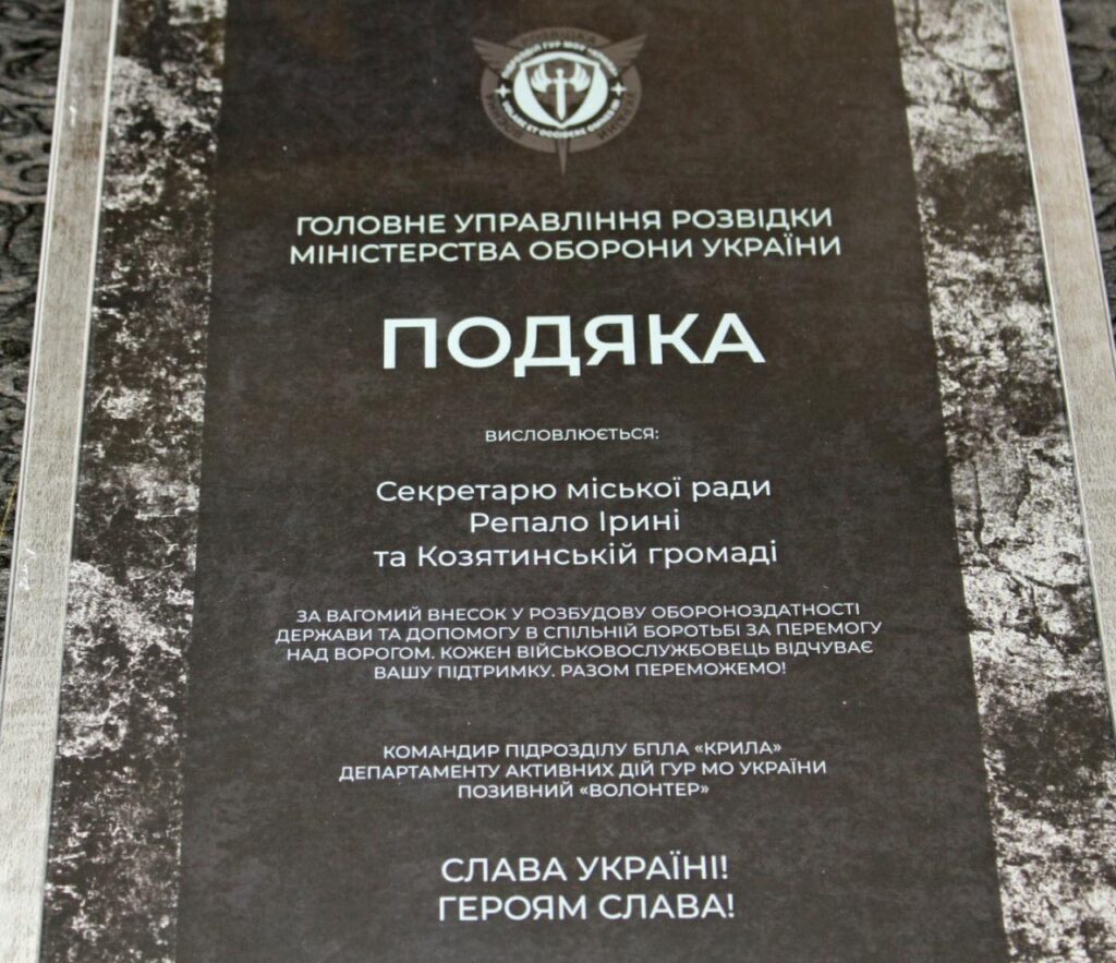 Представники розвідувальної частини завітали до Козятинської громади, аби особисто подякувати за підтримку. У міській раді зазначають, що допомога оборонцям залишається одним із ключових напрямків роботи та відповідальністю громади в умовах війни.
