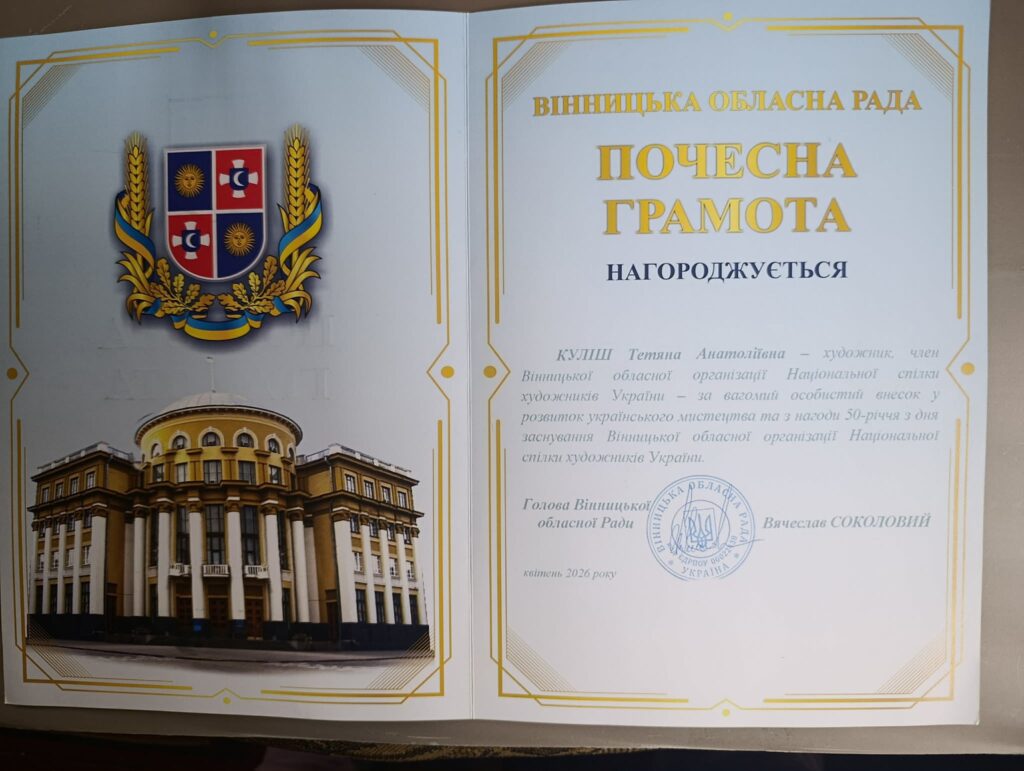 Особливою відзнакою стала нагорода для Тетяни Куліш — художницю відзначили грамотою за вагомий особистий внесок у розвиток українського мистецтва.