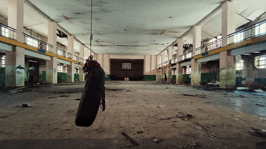 Колись тут лунав свисток судді, гул уболівальників і кроки спортсменів, які виборювали свої перемоги. Сьогодні — тиша, уламки стелі, купи сміття і сліди багаторічного занепаду.