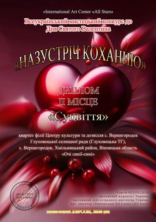 Квартет «Суцвіття» здобув почесне ІІ місце у Всеукраїнському мистецькому конкурсі до Дня Святого Валентина «Назустріч коханню».