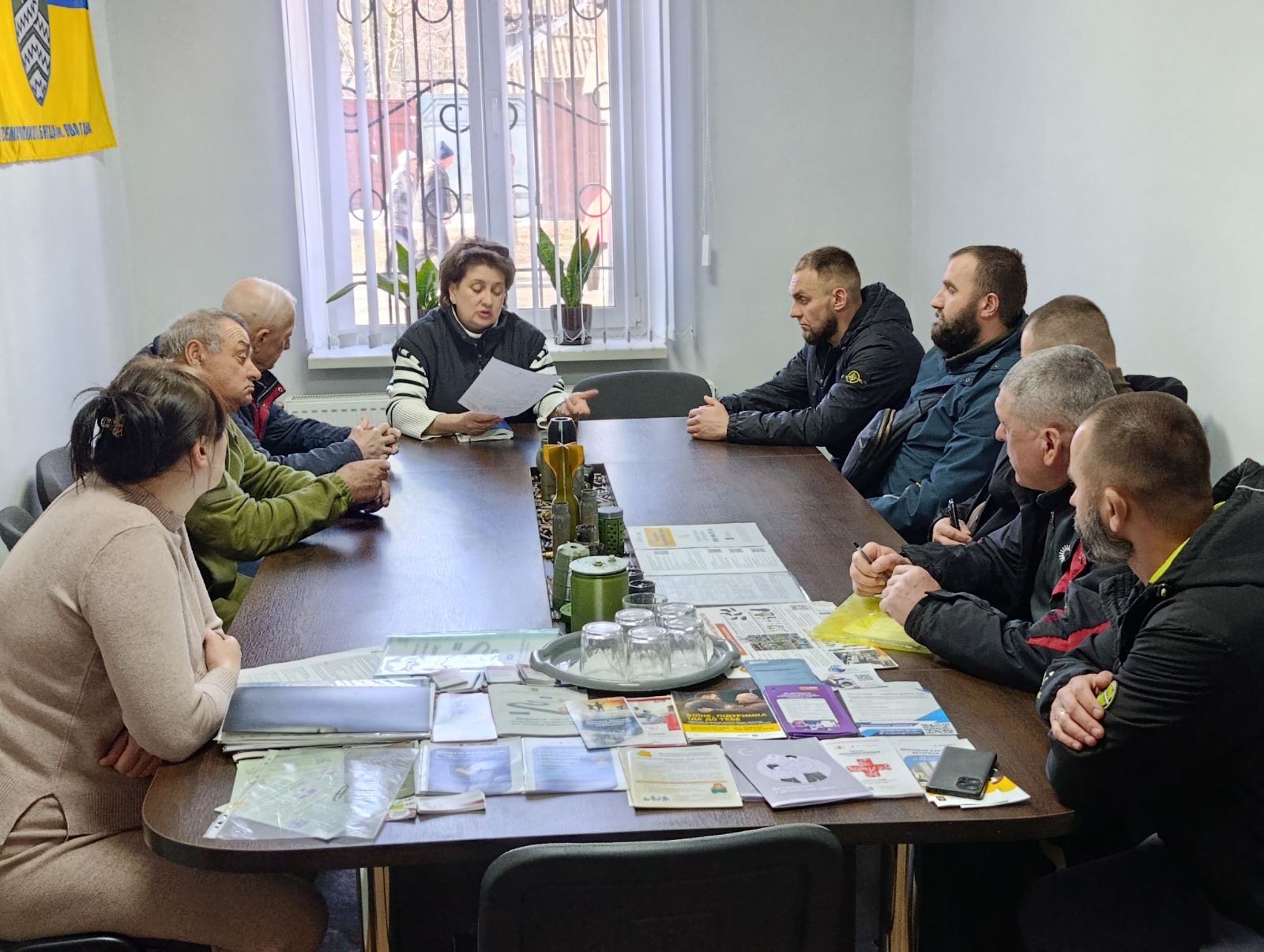 На запрошення голови громадської організації «Учасники АТО/ООС та патріоти Козятинської ТГ» Миколи Бабура з учасниками бойових дій та членами їхніх сімей поспілкувалася головна спеціалістка з питань житлового фонду управління житлово-комунального господарства Козятинської міської ради Оксана Сікалюк.