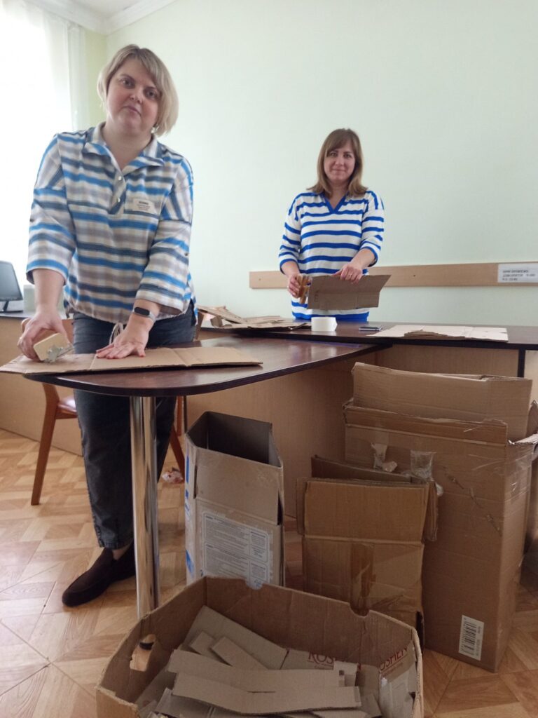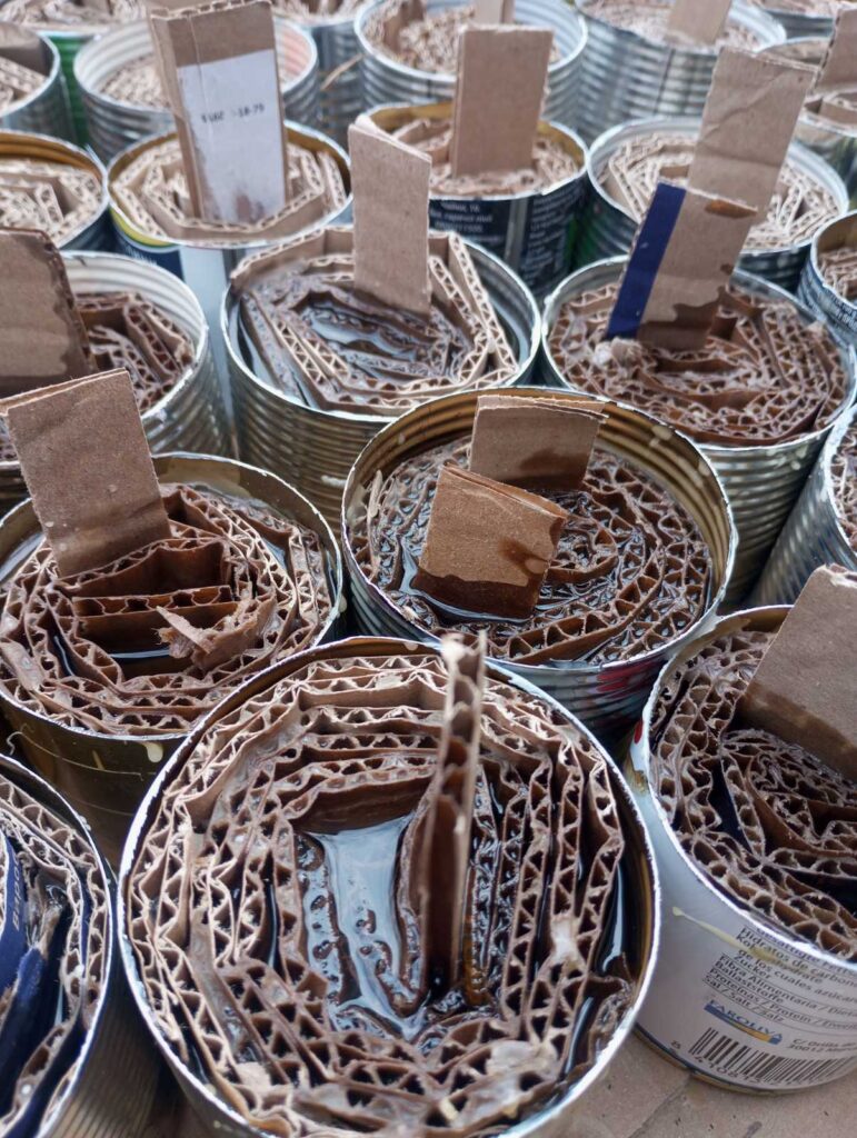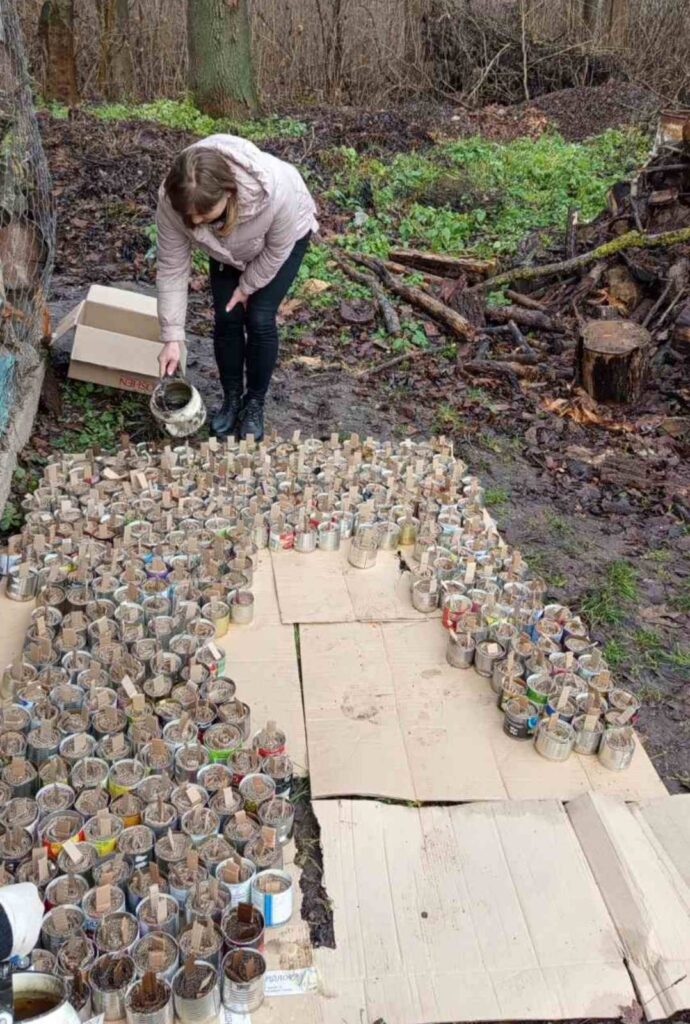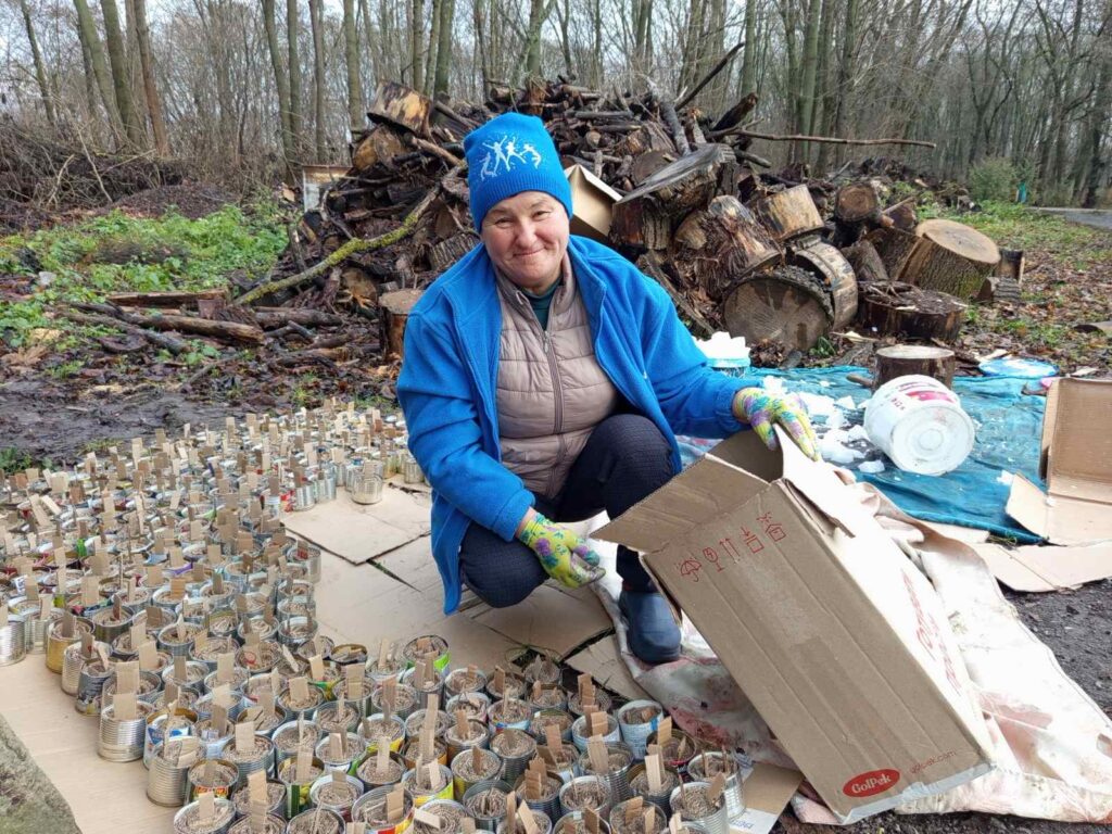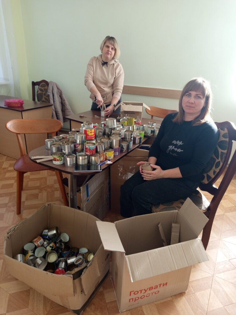 Під час планових відключень електроенергії працівники місцевих установ нарізали картон і наповнювали ним бляшанки. Згодом розтопили віск та парафін і залили свічки, які допоможуть військовим зігрітися у холодну пору.