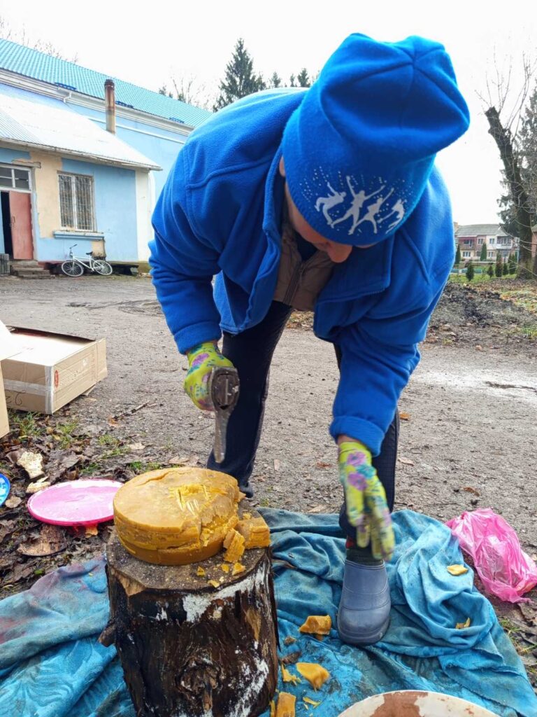 ІнІціативні мешканці громадивласним коштом та за забрані з донатів гроші придбали біля 100 кілограмів парафіну. Місцева релігійна громада передала віск, що також став у пригоді під час виготовлення свічок.