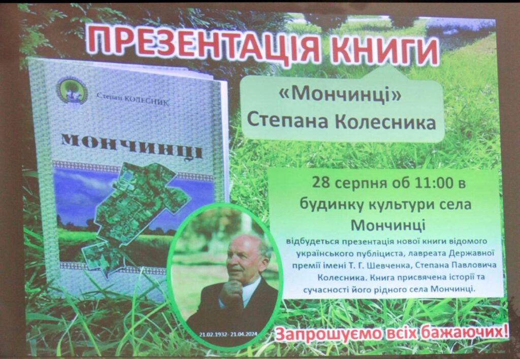 У Будинку культури села Мончинці Калинівської громади відбулася особлива подія — презентація книги Степана Колесника «Мончинці» (серія «Моя Вінниччина – 1000 книг про 1000 сіл», випуск 107).