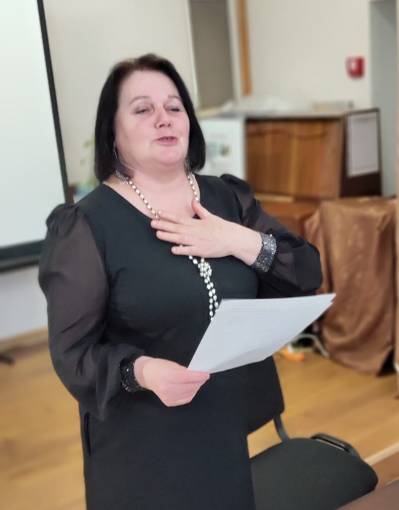 Під час зустрічі звучали авторські вірші, присвячені родині, любові, життю, війні та надії на мир. Лунали й українські народні пісні — сповнені різних настроїв: радості, смутку, сподівань і мрій про світле майбутнє. Слухачі активно долучалися до виконання, підтримували артистку оплесками й не приховували емоцій.