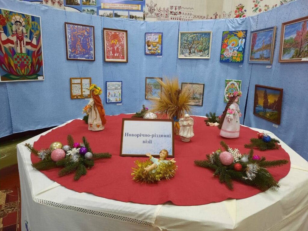 На виставці представлені роботи відомих хмільницьких митців: Дмитра Івановича Власійчука, Анни Стороженко, Аліси Євстаф’євої, Миколи Загороднього, Михайла Громова а також ляльки -мотанки Ольги Кононець. Окреме місце в експозиції посіли роботи учнів Хмільницької школи мистецтв, які через дитячий, але щирий погляд передали атмосферу зимових свят, родинного тепла та віри.