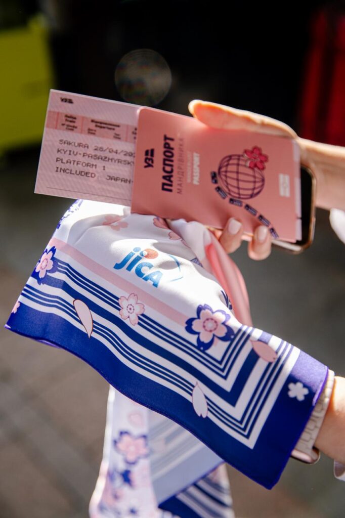 Назву «Сакура» обрали символічно — маршрут поєднує Київ та Ужгород, міста, де навесні особливо красиво квітнуть сакури. Сам поїзд оформлений у японському стилі: 12 вагонів мають брендування пелюстками сакури, а пасажирам доступний спеціальний онлайн-портал про японську культуру, архітектуру та мистецтво.