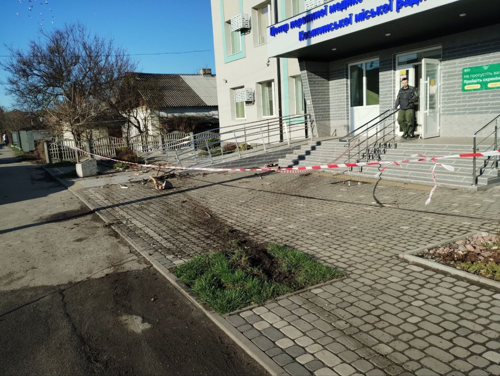 Про пошкодження на території закладу також повідомила у соцмережах головна лікарка Юлія Радогощина, оприлюднивши відео з місця події.