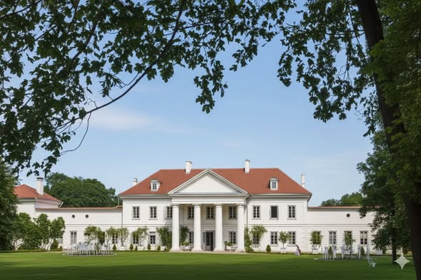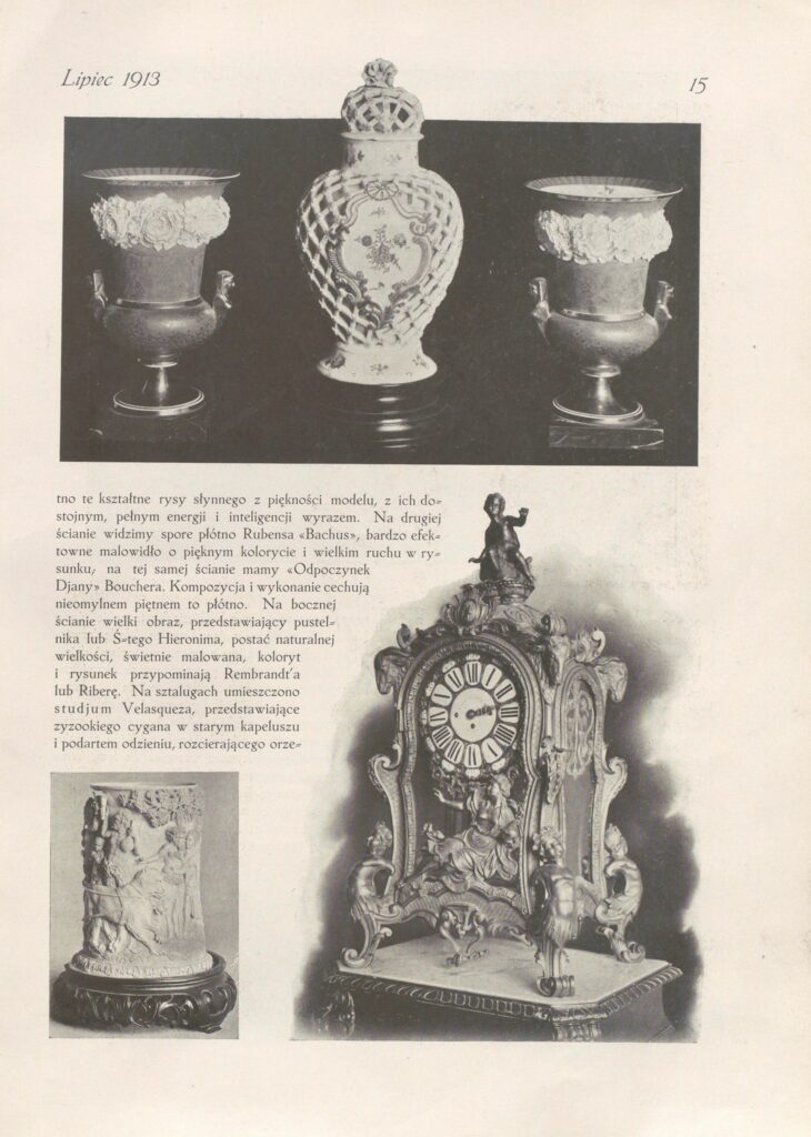 Окремі зали палацу були оформлені з тонким знанням стилів: Empire-салон, бібліотека з літературою з історії мистецтва, Дубовий салон, їдальня з ґданськими меблями, кабінет господаря з родинними портретами. Окрім живопису, колекція включала бронзові та мармурові скульптури, старовинну порцеляну, коштовні меблі, годинники епохи Людовіка XVI.