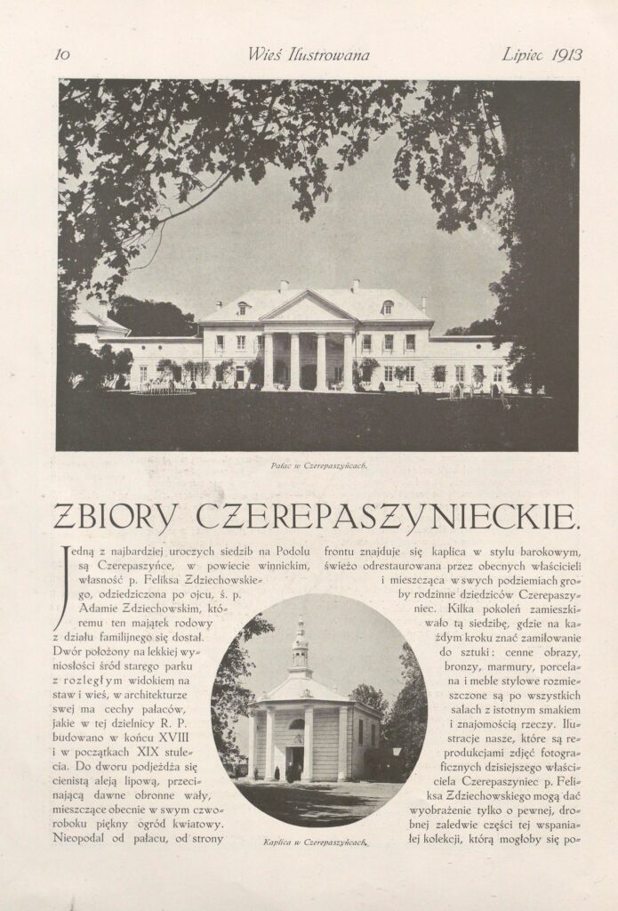 Про це свідчать матеріали польського ілюстрованого журналу Wieś Ilustrowana за 1913 рік, нещодавно оприлюднені дослідником історії з Вінниці Stoguno Cheval. Світлини та публікація відкривають вражаючу картину культурного життя маєтку родини Здзєховських — власників села Черепашинці (тепер Калинівської громади) у ХІХ — на початку ХХ століття.