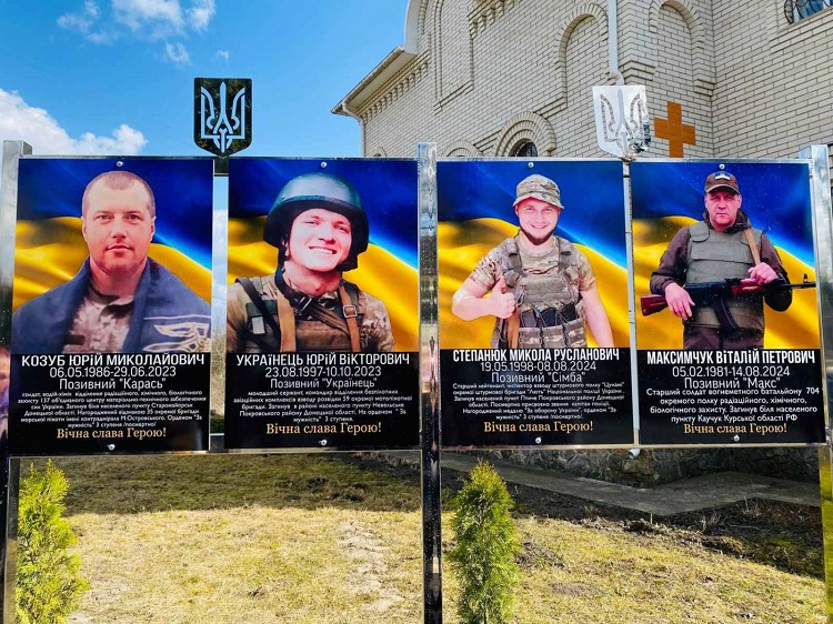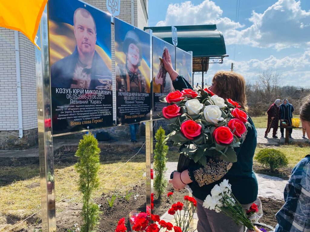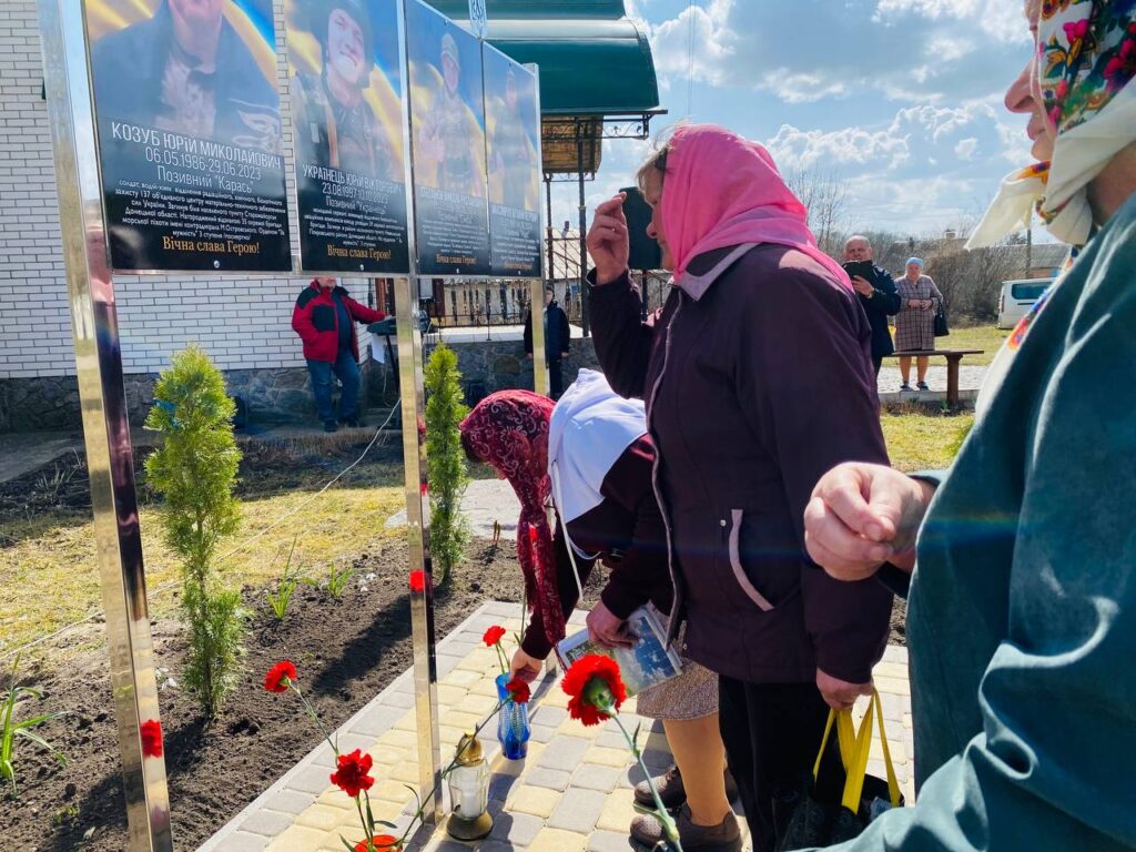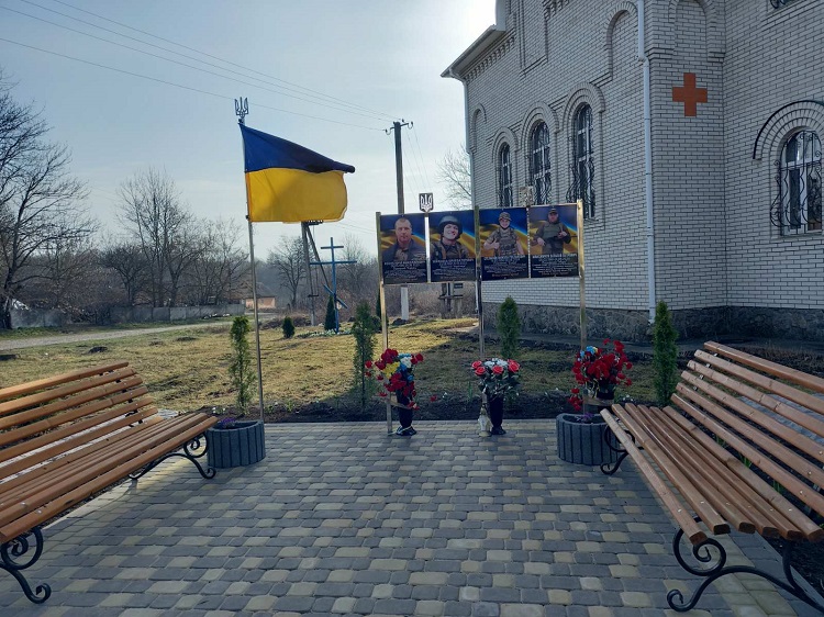 Пам’ятний простір облаштували на території храму Покрови Пресвятої Богородиці. Тут увічнили імена загиблих Захисників: солдата Юрія Козуба, молодшого сержанта Юрія Українця, старшого лейтенанта Миколи Степанюка та старшого солдата Віталія Максимчука.