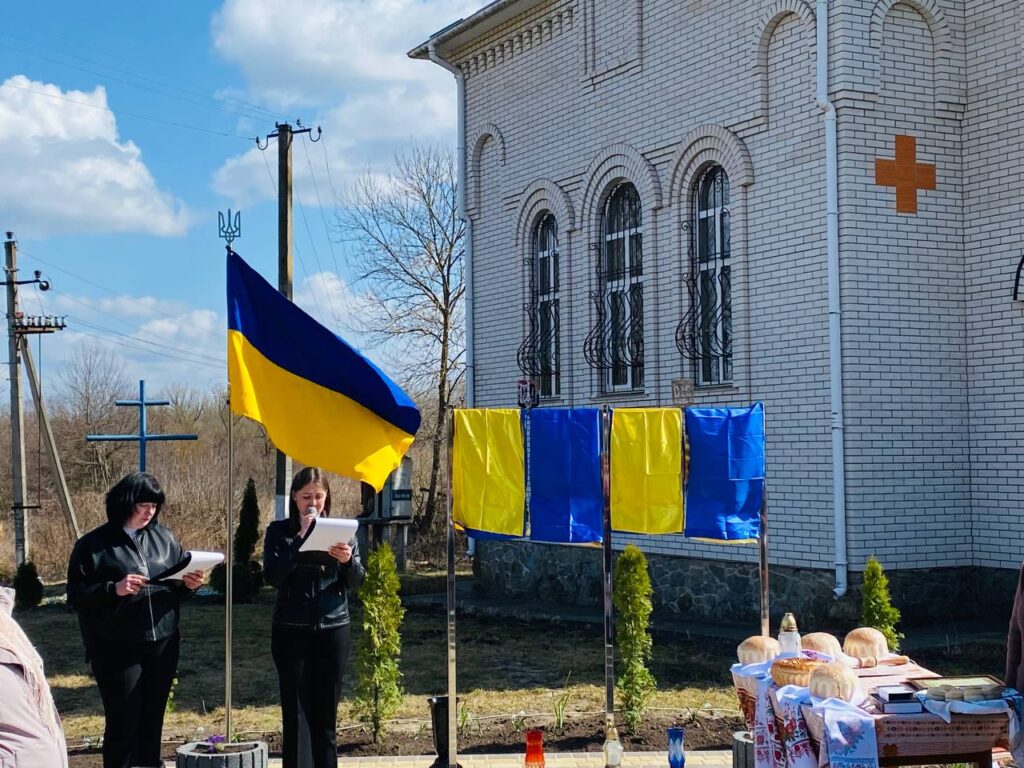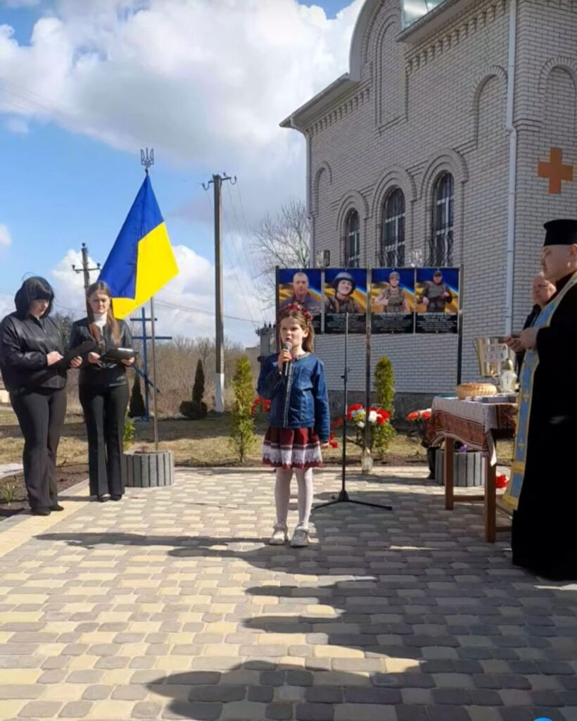 До створення меморіального простору долучилися священник Юрій Бунецький, парафіяни храму, представники влади, родини загиблих, учні та педагоги, а також жителі громади.