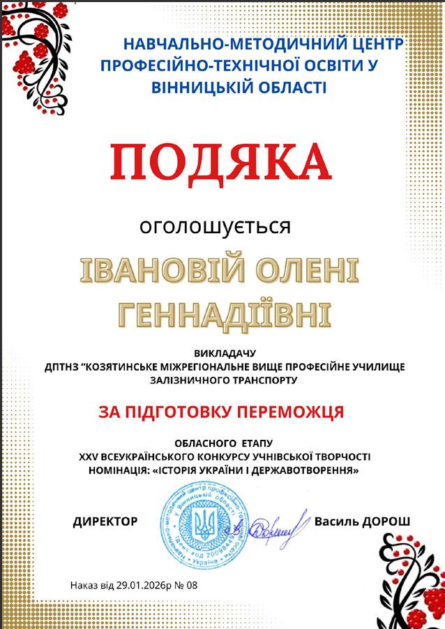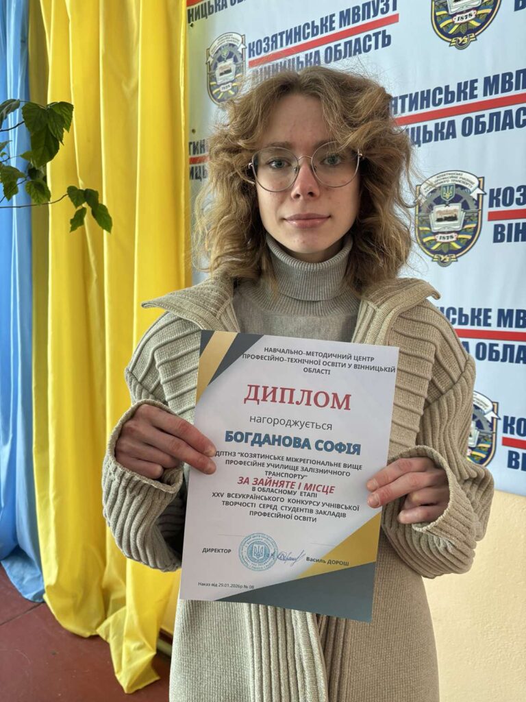 Здобувачі освіти Козятинського МВПУЗТ стали призерами обласного етапу ХХV Всеукраїнського конкурсу учнівської творчості. Щорічне змагання відкриває нові таланти та дає можливість молоді проявити себе у двох номінаціях — «Історія України і державотворення» та «Література».