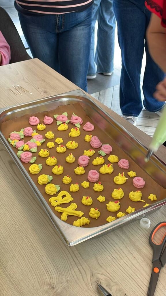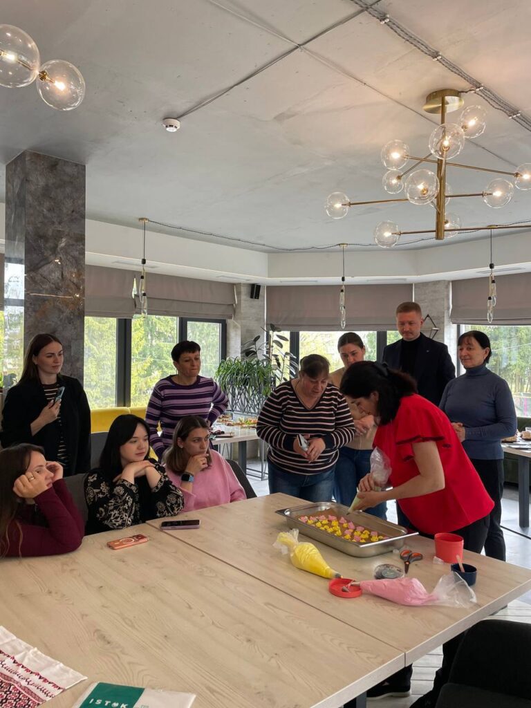 Під час майстер-класу учасниці створювали прикраси для великодніх пасок — ніжні квіти, листочки, маленьких курчат. Здавалося б, простий творчий процес поступово перетворювався на щось більше: у цих деталях з’являлося відчуття затишку, якого так бракує у непростий час.