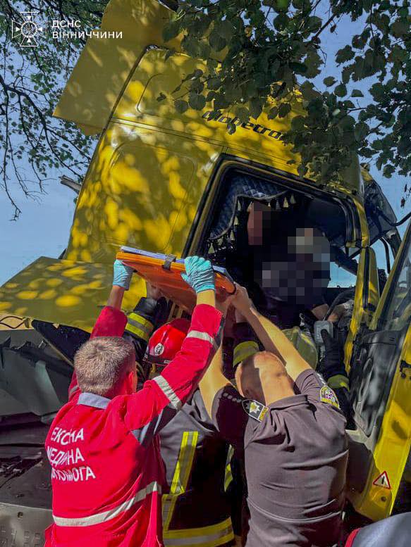 У результаті аварії в кабіні автомобіля опинився затиснутим 60-річний водій. Рятувальники ДСНС за допомогою спеціального обладнання деблокували чоловіка з понівеченого транспортного засобу та передали його медикам екстреної допомоги.