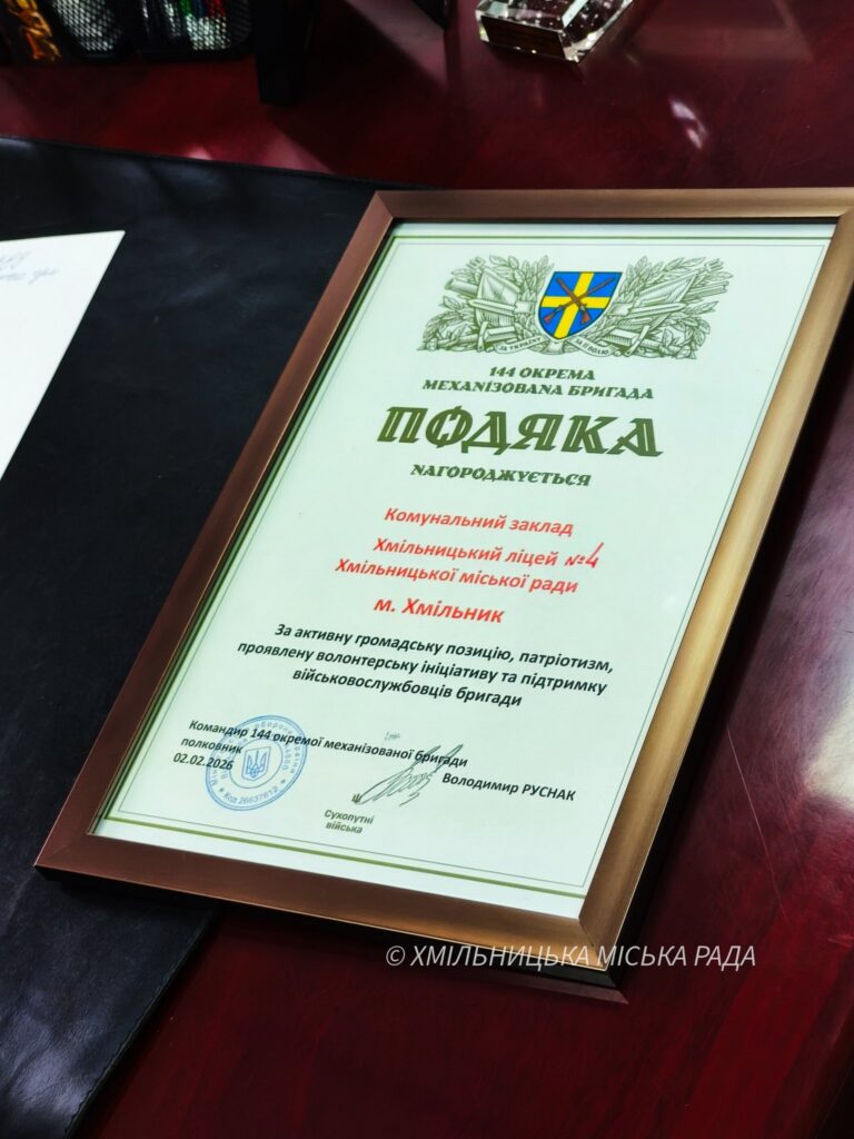 Міський голова Микола Юрчишин виконав клопотання 144 окремої механізованої бригади та від імені військових подякував навчальному закладу за активну громадянську позицію, патріотизм і постійну підтримку українських захисників.