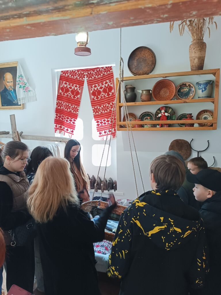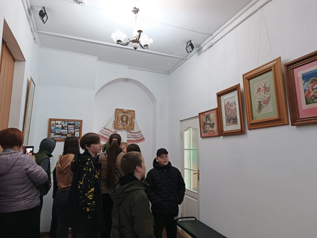 Крім того, учні відвідали виставку «Вишивана краса», де представлені роботи майстринь Людмили Машевської та Наталії Дзіодзін. Остання особисто поспілкувалася з дітьми, розповіла про своє захоплення вишивкою, сімейні традиції та роль родини у творчості.