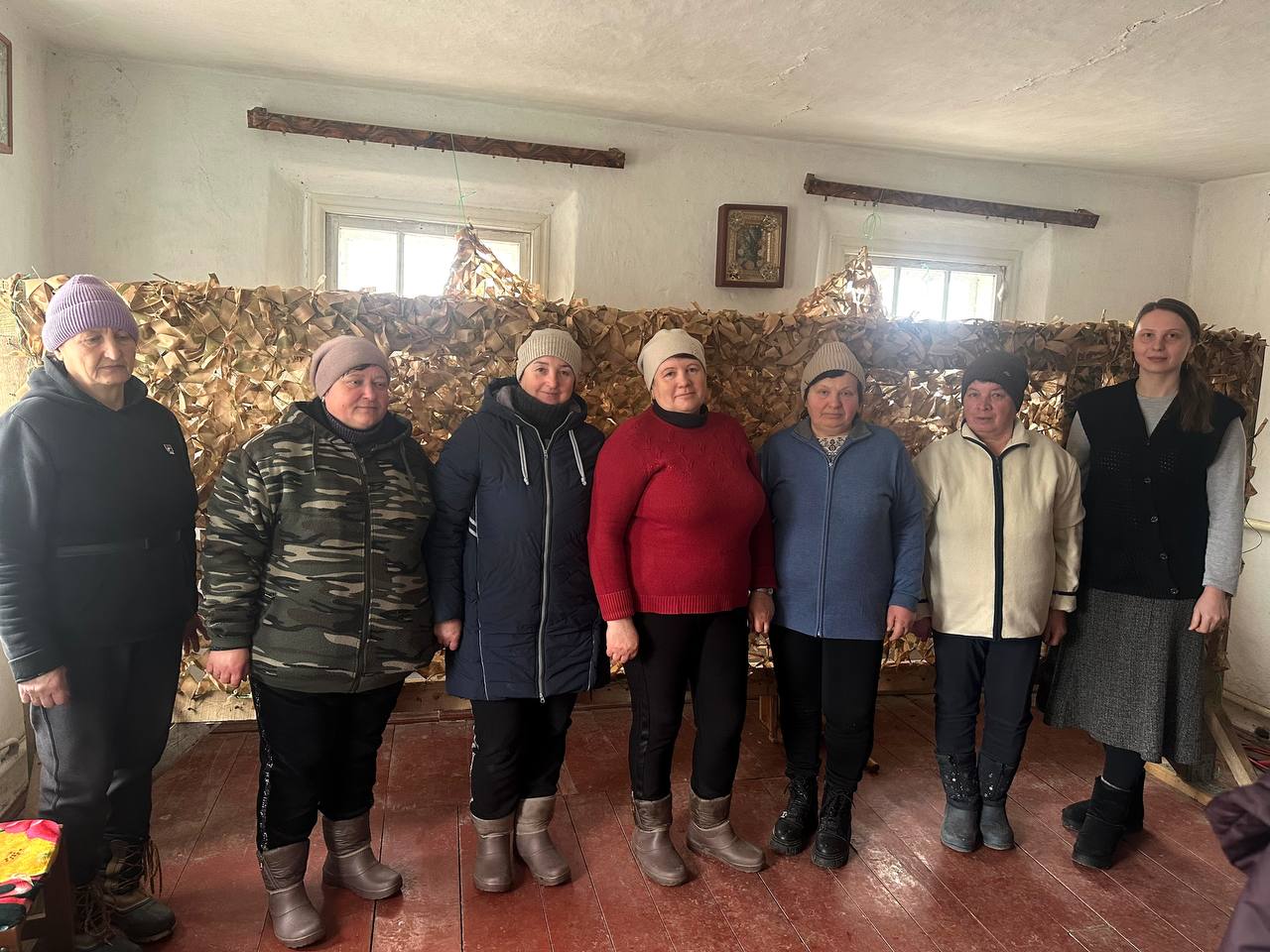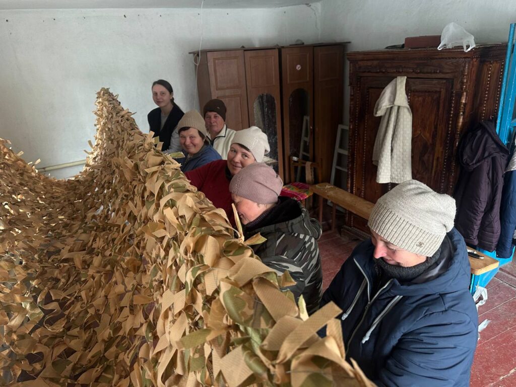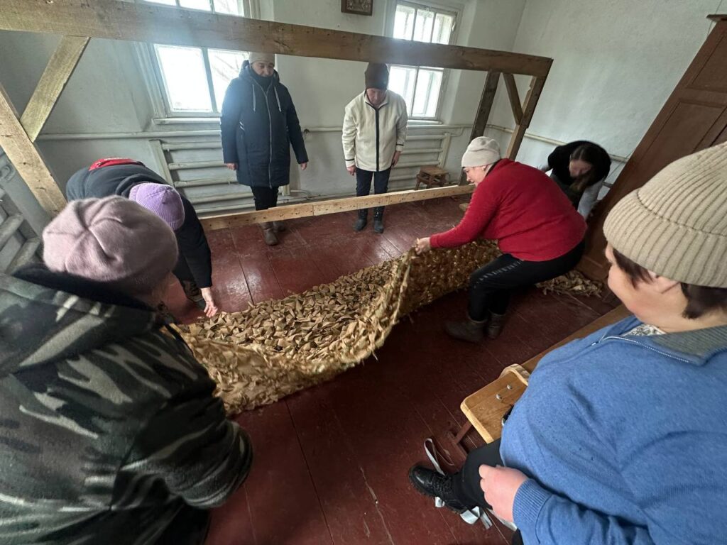 Саме тому люди звернулися до старости села з проханням знайти приміщення, де можна було б плести маскувальні сітки для фронту. Невдовзі таке місце знайшлося. Мешканці власноруч облаштували приміщення: палять грубку, щоб можна було працювати навіть у холодну пору, зробили рамку для плетіння сіток, закупили основу та взялися до роботи.