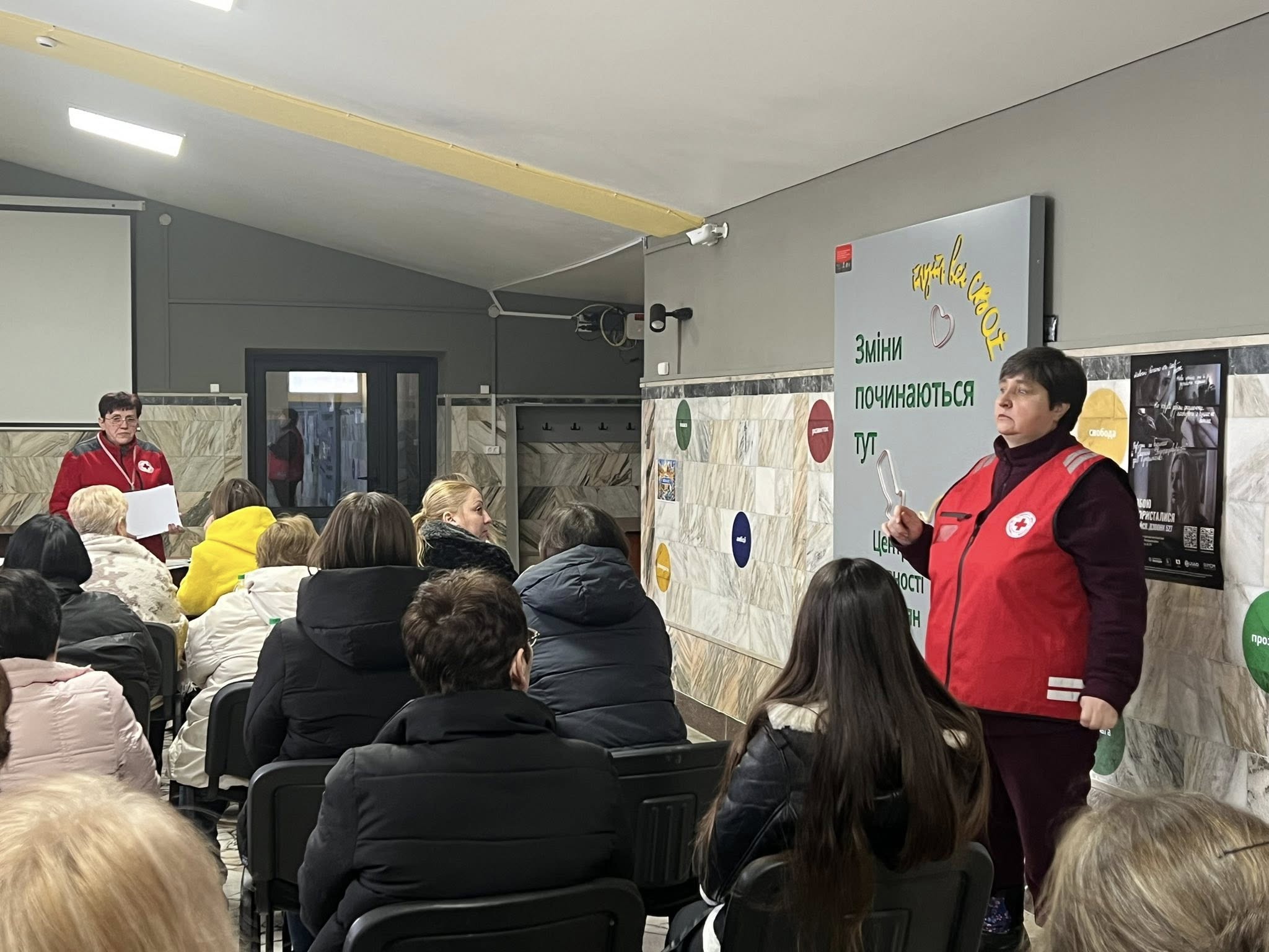 Захід провели волонтери Хмільницької міськрайонної організації Товариства Червоного Хреста України. Зокрема, Оксана Лісіцька, керівник напрямку першої психологічної допомоги, та Ірина Запара, волонтерка організації, поділилися практичними інструментами психологічної самодопомоги та підтримки у кризових ситуаціях.