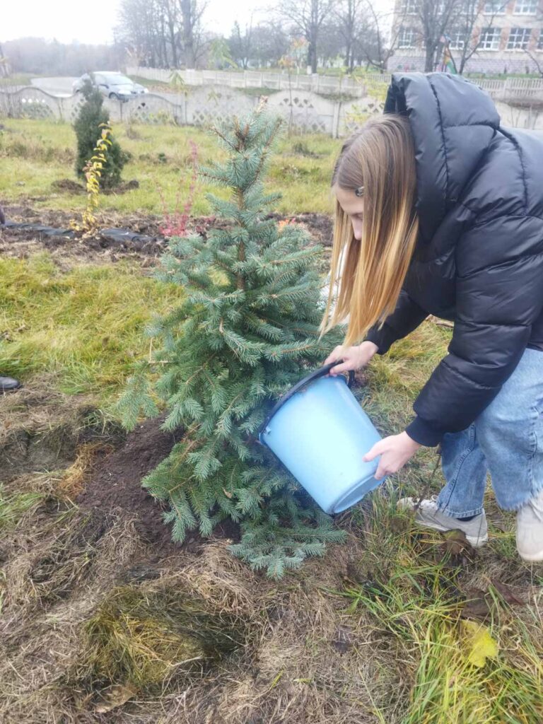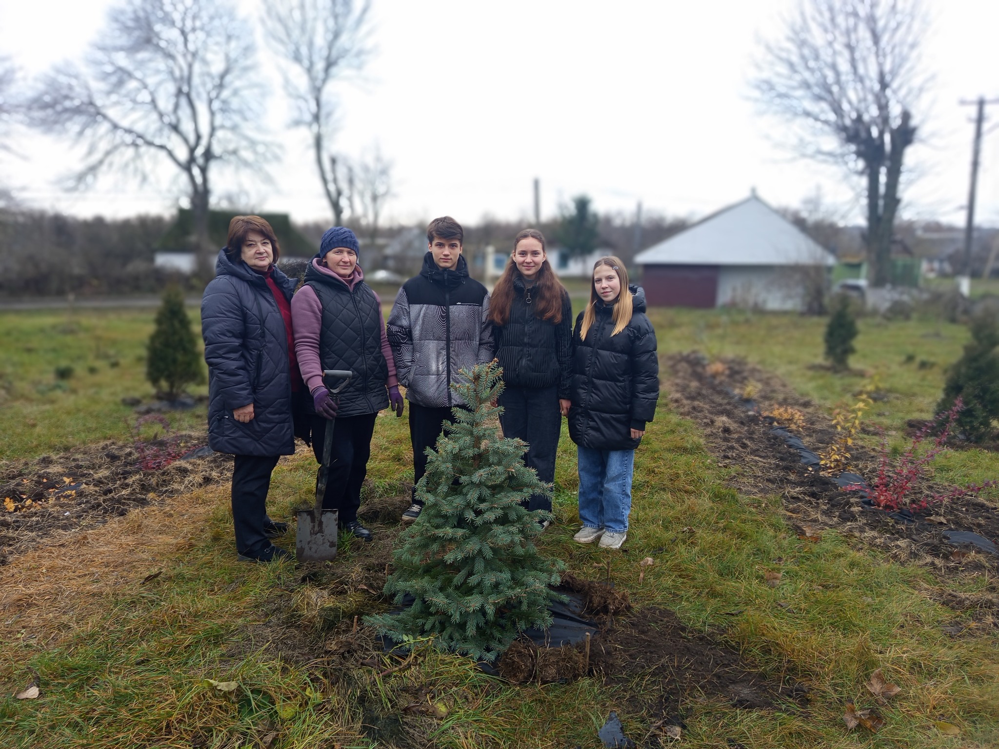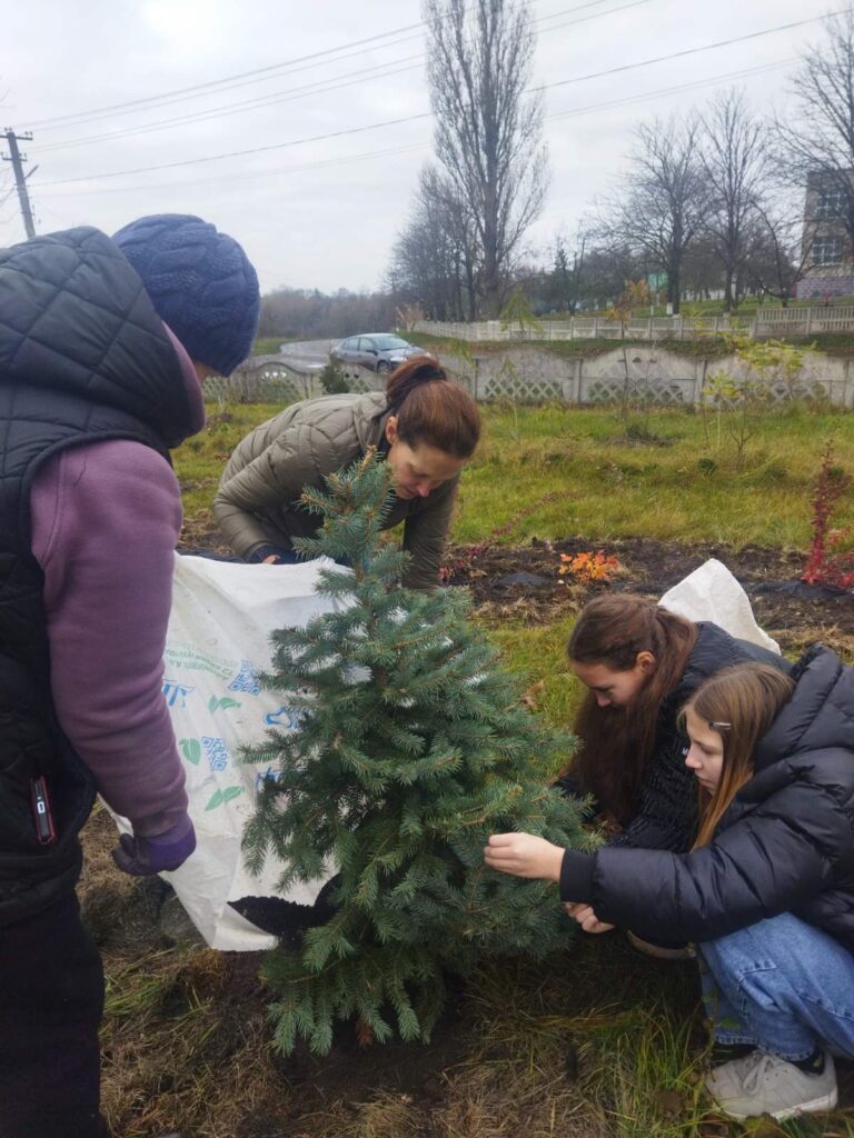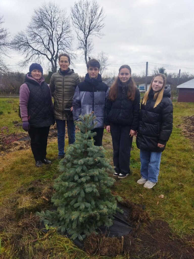 Символічною подією стало висадження блакитної ялинки, яку для громади передала громадська організація «Центр відновлення екосистем». Саме вона стала центральним елементом майбутньої композиції й, цілком можливо, у перспективі перетвориться на головну новорічну ялинку села.