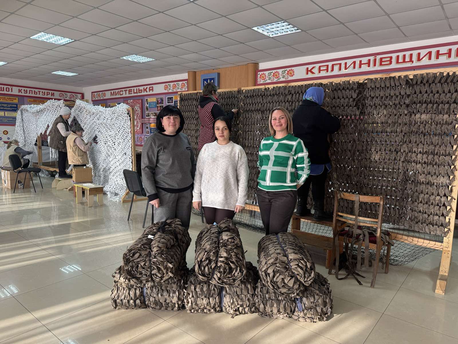У Калинівці триває волонтерська робота на підтримку українських Захисників. Працівники відділу культури та туризму Калинівської міської ради вкотре сплели маскувальні сітки для потреб військових, які виконують бойові завдання на передовій.