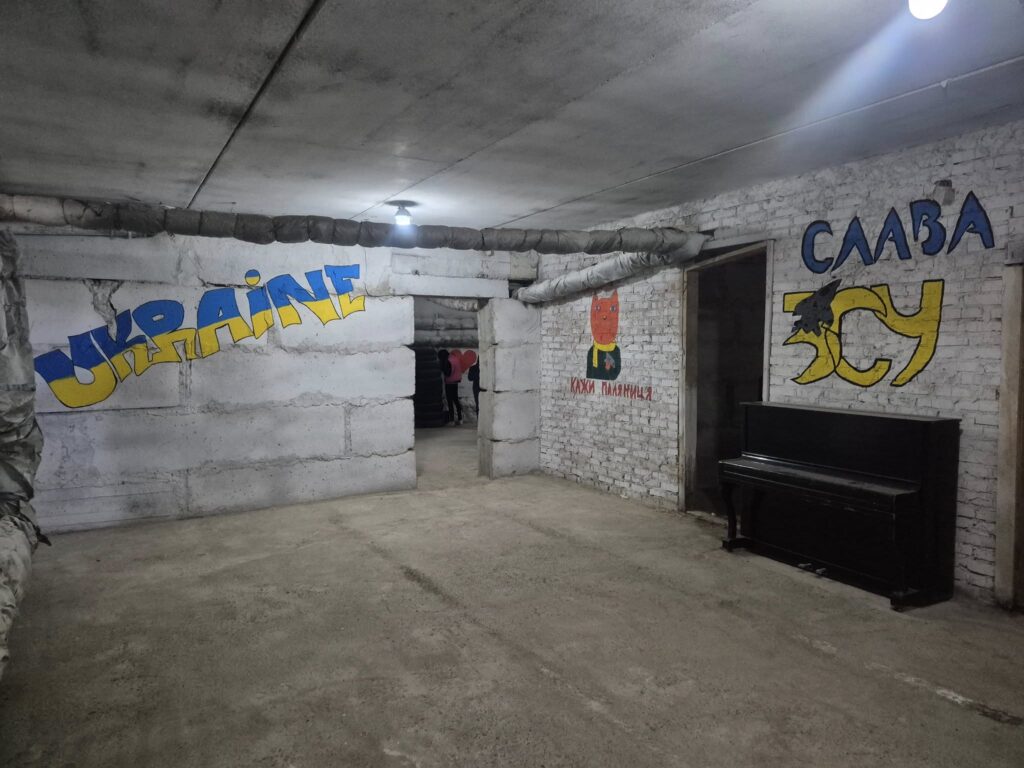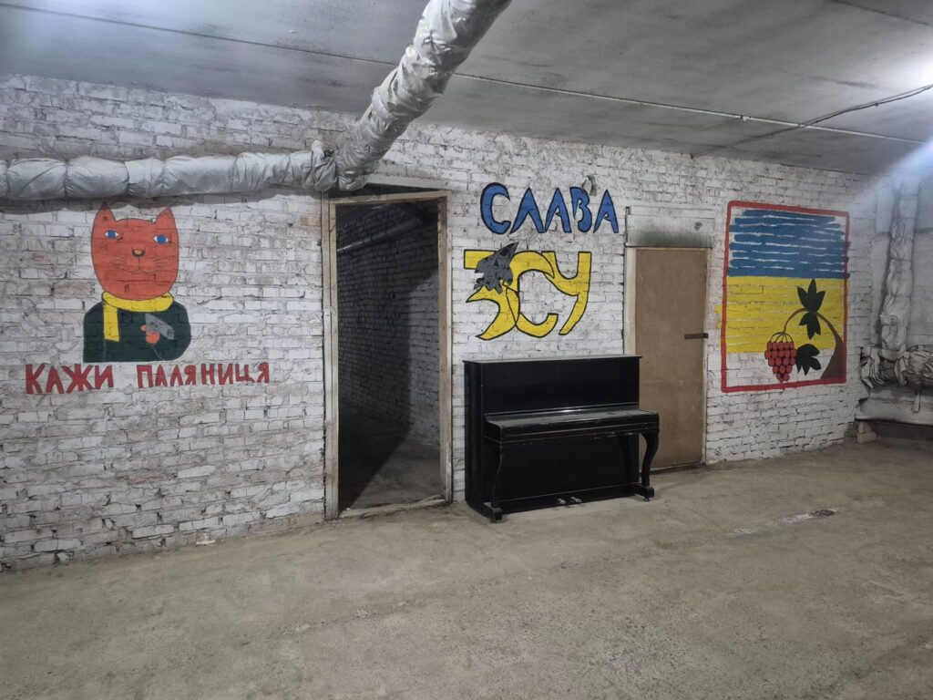 — Ми довго думали, як окультурити це приміщення. Спочатку хотіли розфарбувати стіни у піксель. Але війни нам вистачає у повсякденному житті, хотіли додати позитиву, тому обрали веселі та патріотичні малюнки, — продовжує Оксана Смук. — Стало у пригоді також старе піаніно, яке тепер є окрасою приміщення.