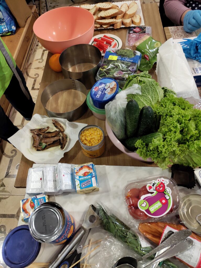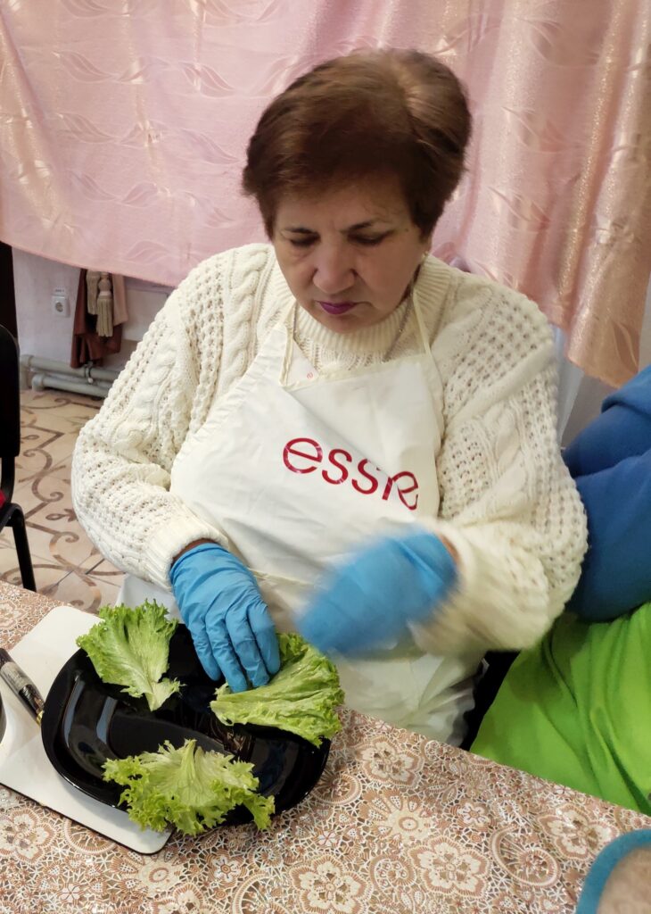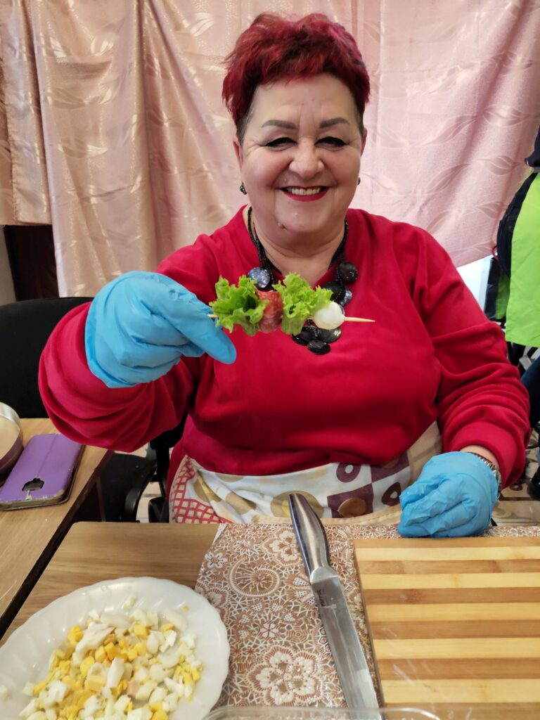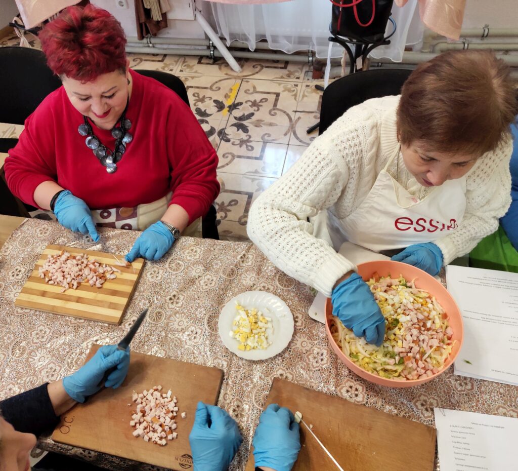 Цього разу підопічні терцентру, які регулярно й з великим зацікавленням відвідують кулінарні заняття, опановували приготування святкових страв із власноруч придбаних продуктів. Учасники гуртка навчалися готувати два види корисних салатів, дві закуски та хрумкі брускети, які можуть стати окрасою різдвяного й новорічного столу.