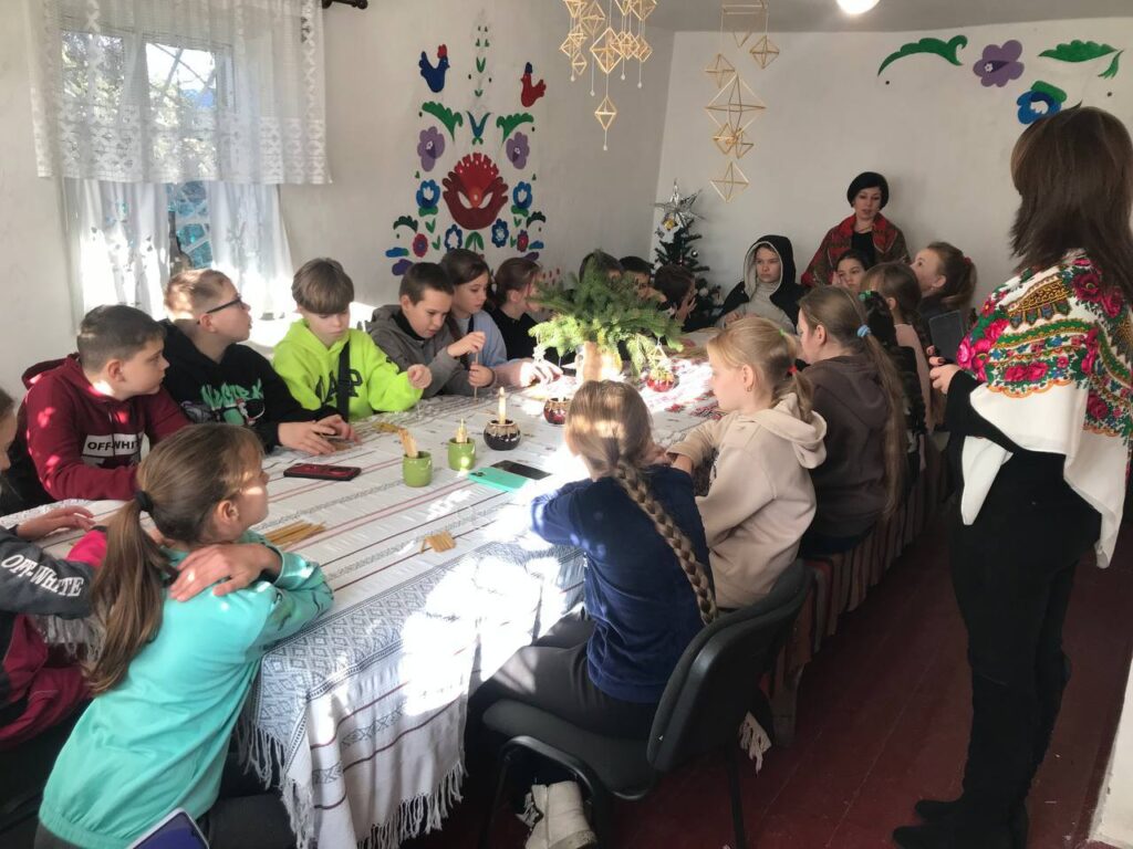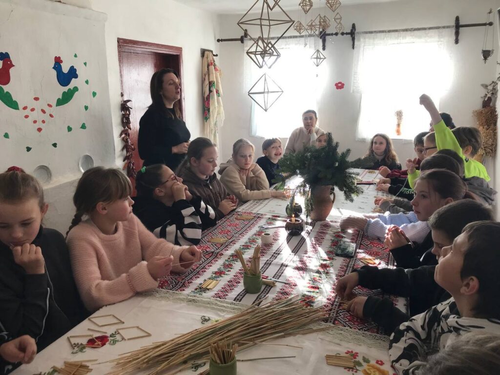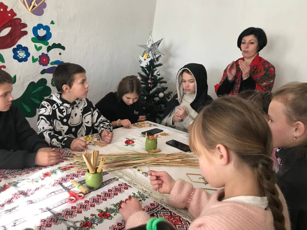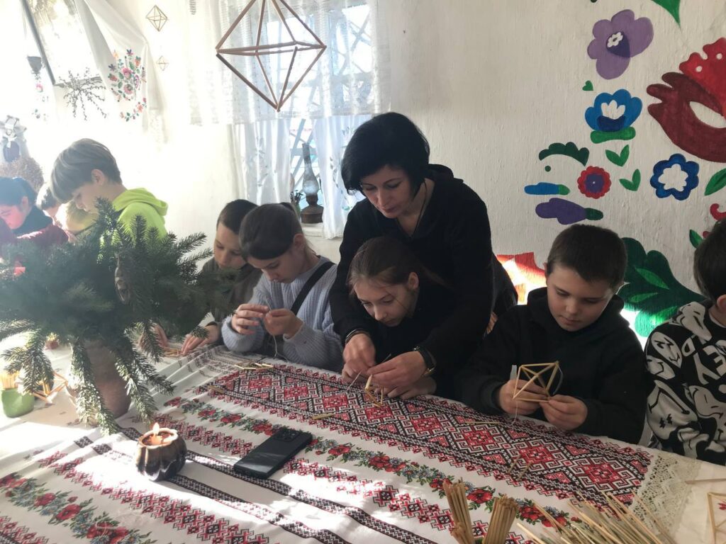 У теплій і затишній атмосфері етно-хати для учнів 5–6 класів Порицького ліцею Хмільницької громади провели пізнавальний та творчий майстер-клас з виготовлення різдвяних солом’яних павуків — одного з давніх символів українських зимових свят.