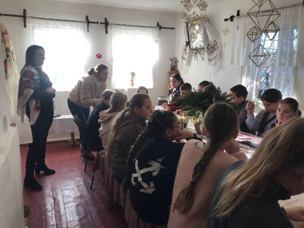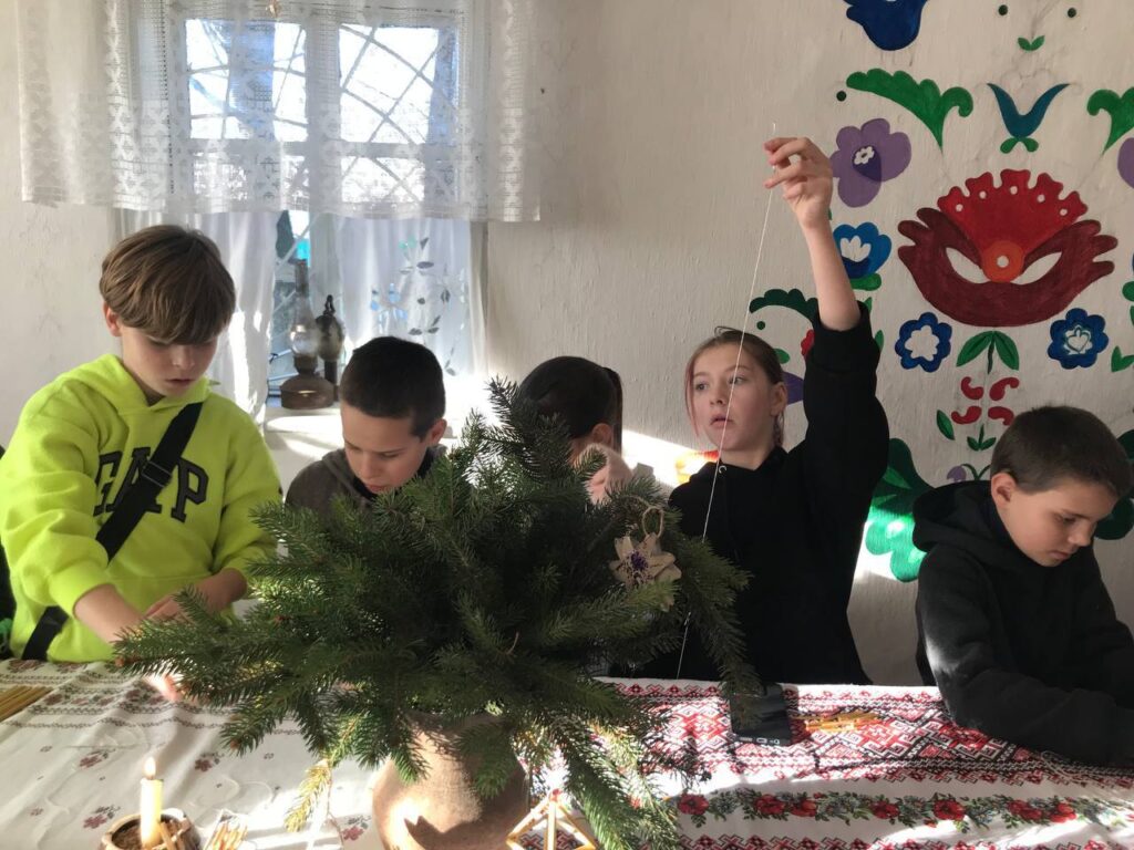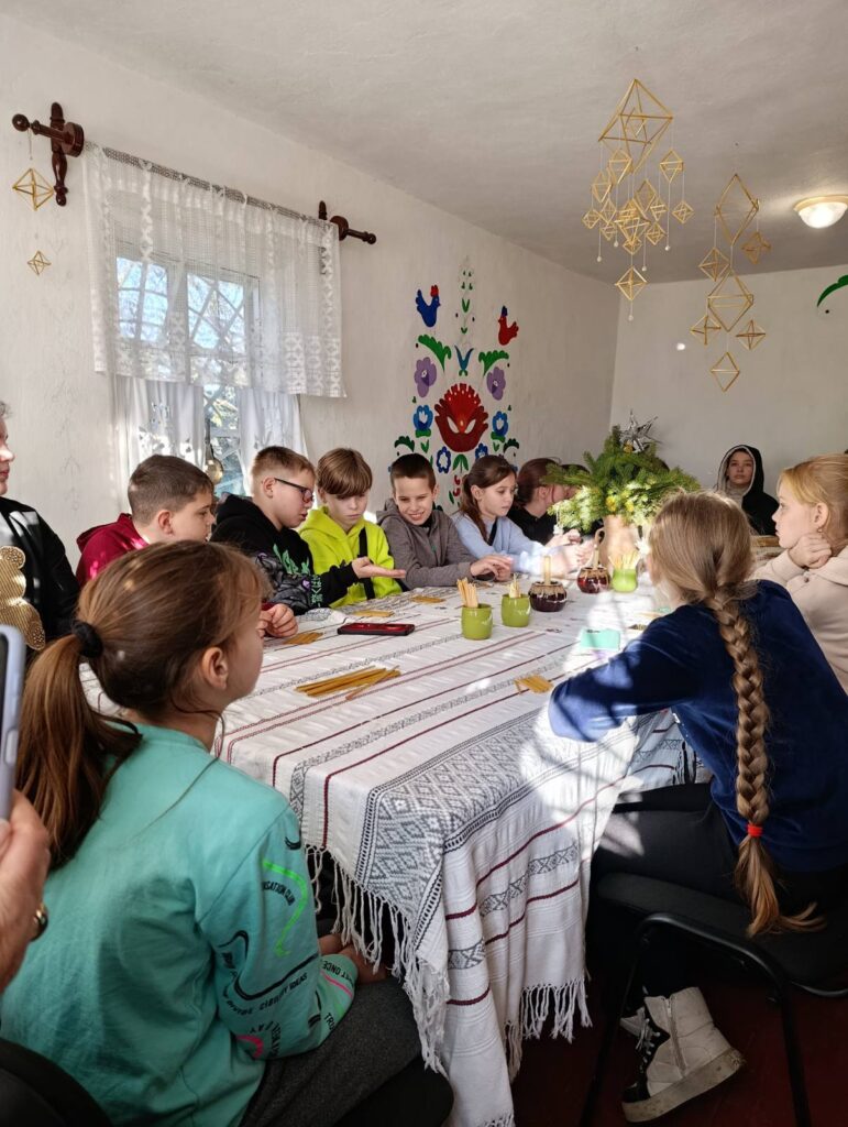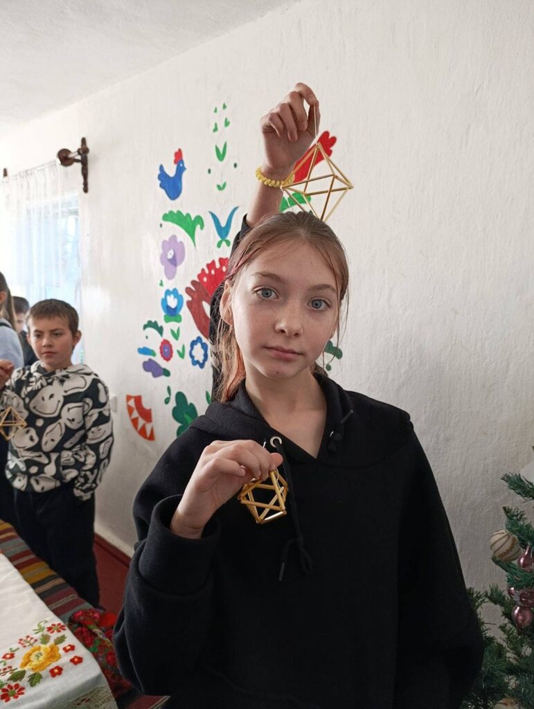 У теплій і затишній атмосфері етно-хати для учнів 5–6 класів Порицького ліцею Хмільницької громади провели пізнавальний та творчий майстер-клас з виготовлення різдвяних солом’яних павуків — одного з давніх символів українських зимових свят.