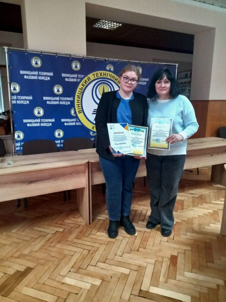 За результатами Конкурсу студентських проєктів податкових реформ серед здобувачів фахової передвищої освіти Вінницької області друге місце у категорії «Реформування системи податкового менеджменту» посіла Ольга Фогель — голова студентської ради коледжу, студентка третього курсу спеціальності 072 «Фінанси, банківська справа».