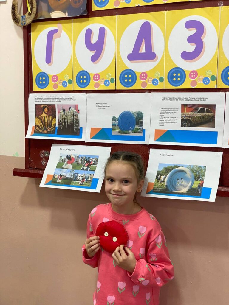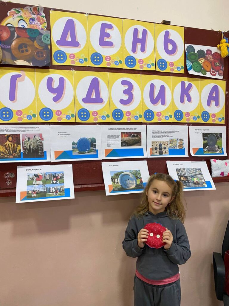 Другий захід приурочили до Дня ґудзика. Студентки Вікторія Вонсович і Вікторія Шевчук провели майстер-клас, ознайомили дітей з історією появи ґудзика та допомогли перетворити, здавалося б, просту деталь на оригінальні арт-об’єкти.