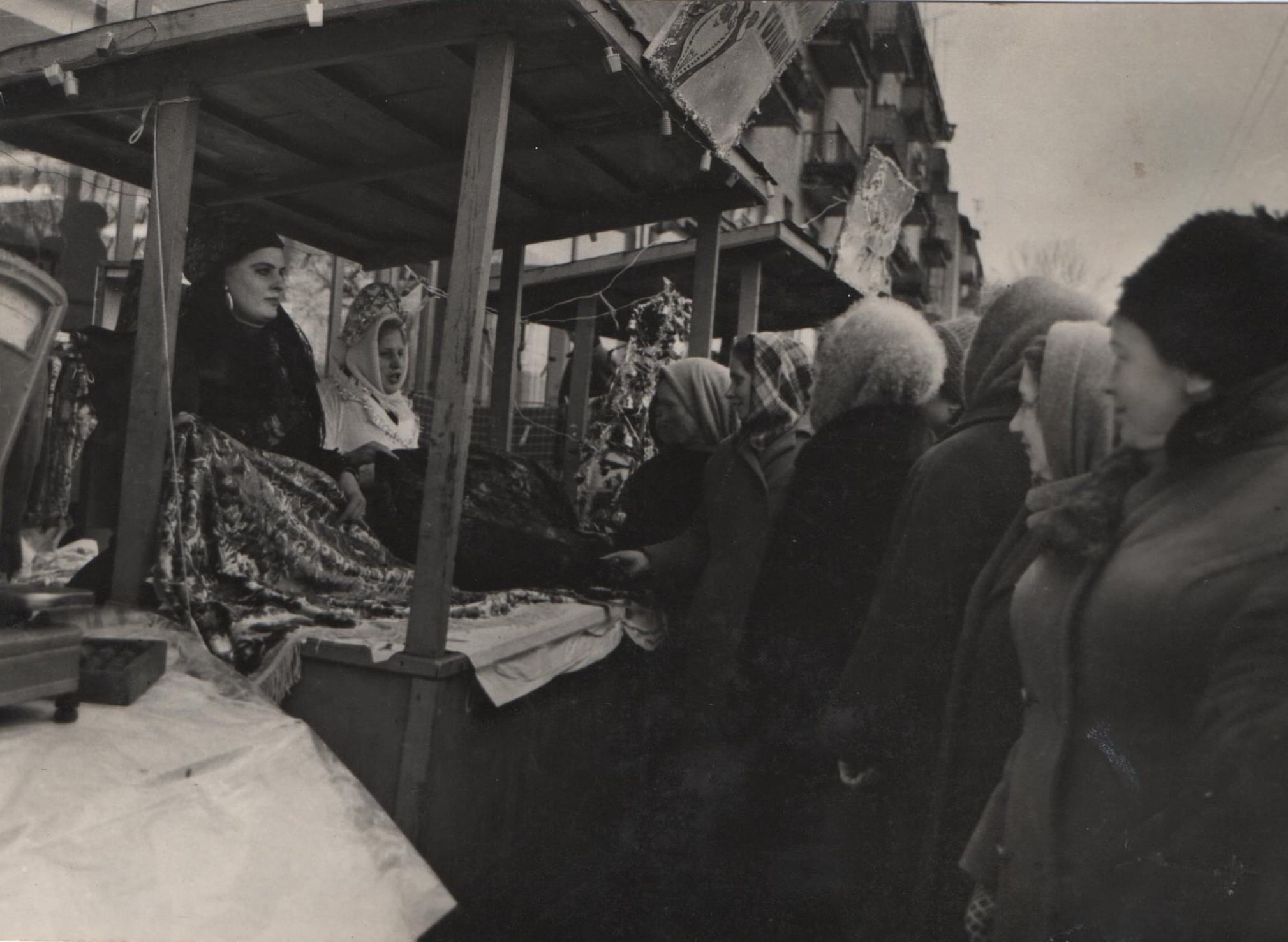 Особливою прикметою того часу стали передноворічні ярмарки. В умовах постійного товарного дефіциту вони перетворювалися на справжню подію. У Козятині торговельні заклади влаштовували святкові розпродажі просто на центральних вулицях — із карнавальними костюмами, конкурсами та лотереями. Один із таких моментів зафіксований на фото 1975 року, де на знімку — Снігуронька серед ярмаркового міського дійства.