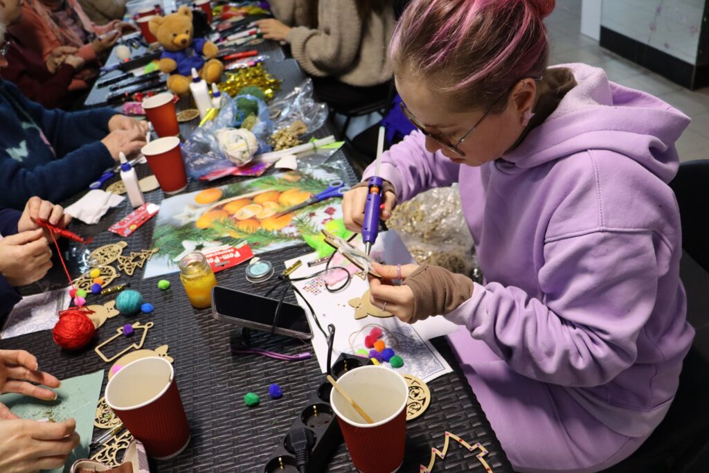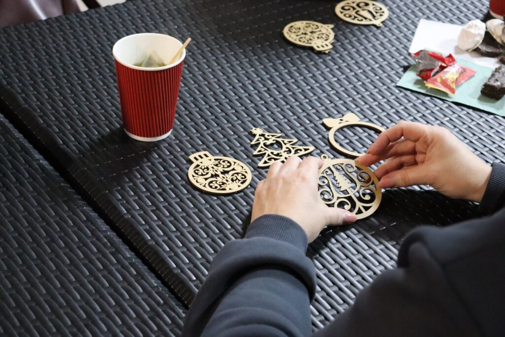 Під час заходу учасники й учасниці розписували та декорували дерев’яні ялинкові прикраси — символи радості, миру й надії напередодні зимових свят.