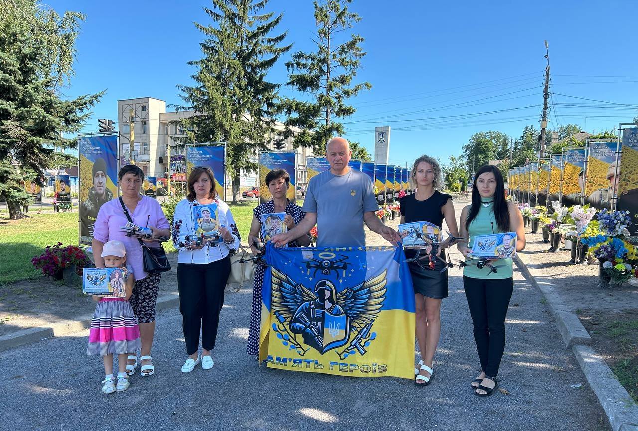23 липня у Хмільнику громадські організації «Волонтери Хмільника» та «Крила Янгола» разом з педагогом-волонтером Миколою Заболотним передали рідним полеглих воїнів іменні дрони, названі на честь Героїв, які віддали своє життя за Україну.