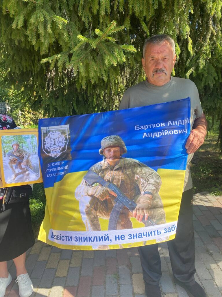 Захід завершився словами підтримки на адресу тих, хто й далі шукає своїх найдорожчих. А рідні ще довго залишалися біля прапора на площі — мовчки, зі сльозами й фотографіями своїх рідних у руках.